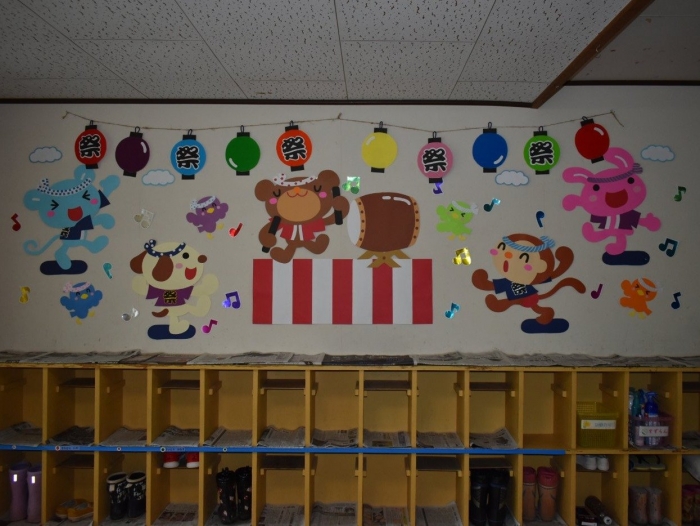 『中西別ふるさと祭り』まで,後2日となりました。 今日は,お祭りで着用するハッピを合わせ,『アンパンマン音頭』をひと踊り! ハッピに腰ヒモ,鉢巻,スズと,本祭り同様の衣装を身に付けると,身も心も引き締まったようです。