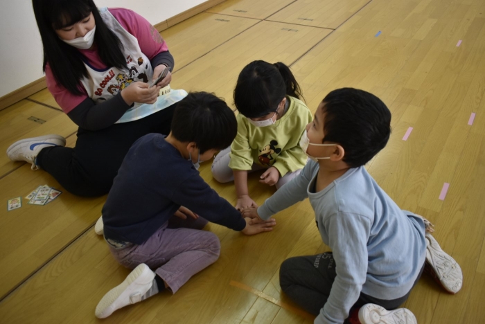 「もう一回やろう!」意欲満々です  次は,年中児が読み手を買って出てくれます