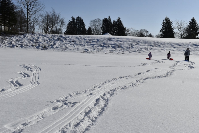 大きいソリを持って行こう⤴ 楽しいソリ滑りのためなら,歩きにくい雪道も何のその!