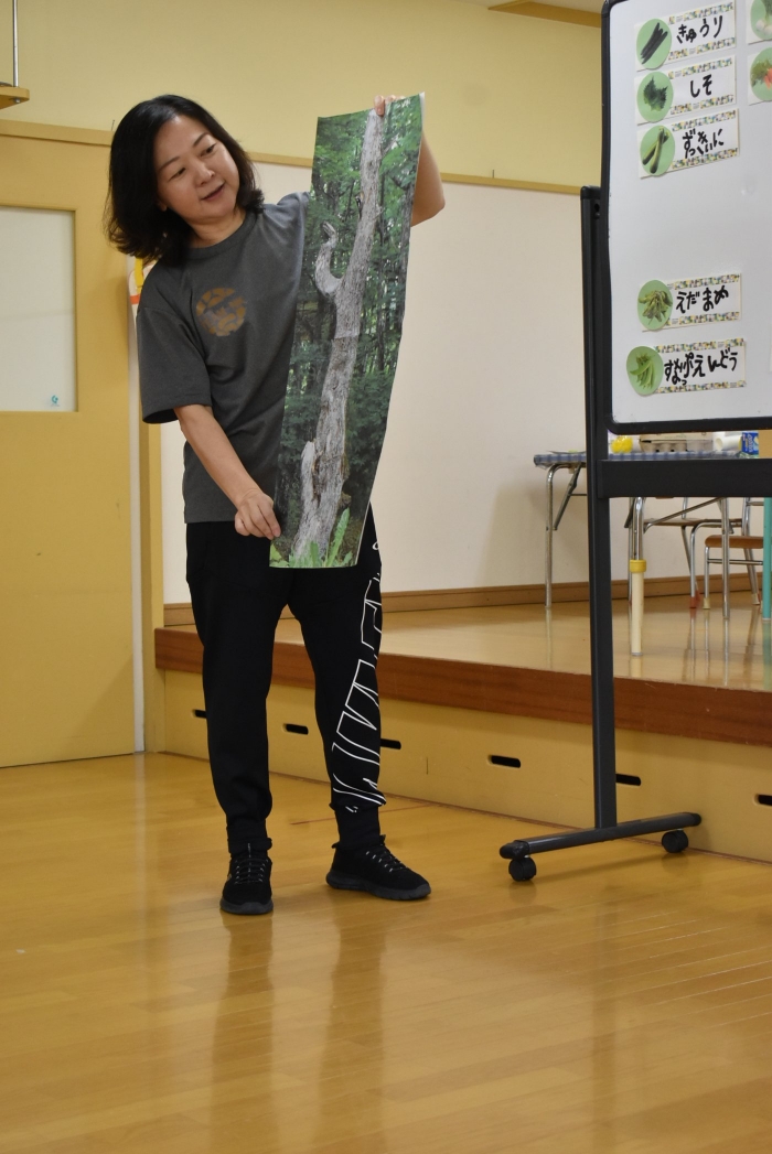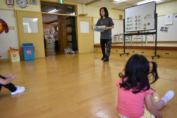 お話タイムでは,畑に植えた野菜や,わくジャンに巣を作っている野鳥,花壇に植えている花の話を
