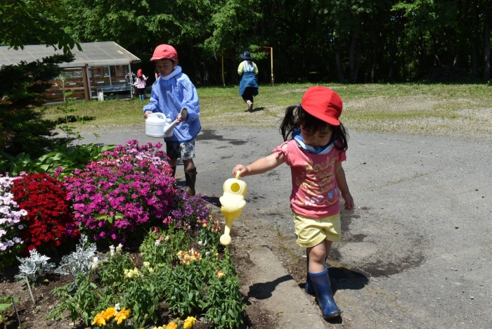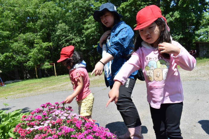 花壇の花も,段々と色鮮やかに! どんな匂いがするのかな? 投げかけてみました