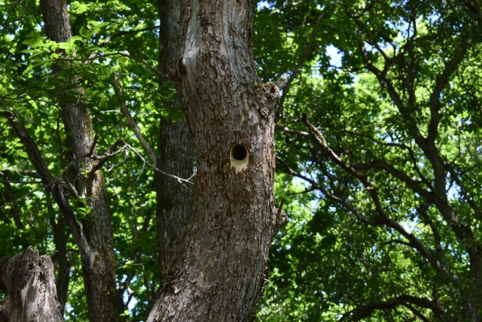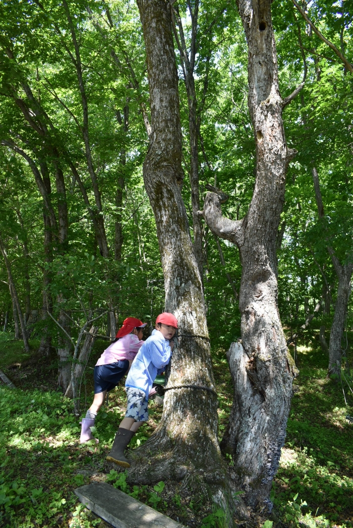 わくジャンに巣を作っているアカゲラ  年長組は巣穴から雛が顔をのぞかせた瞬間を見ました☆彡