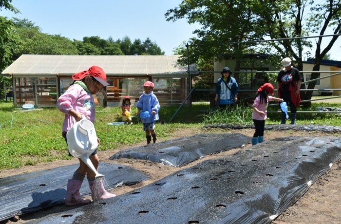 年長組が植えた種が,土日の暑さで一気に大きくなりました