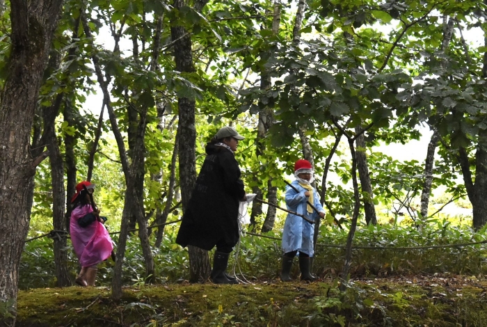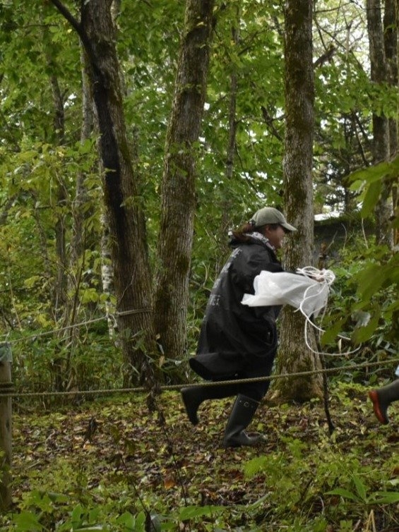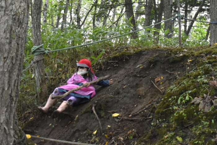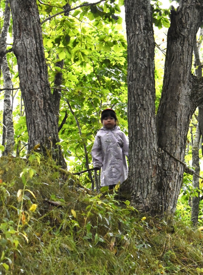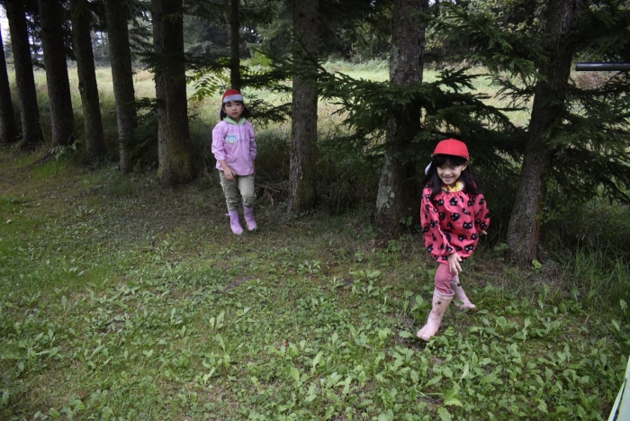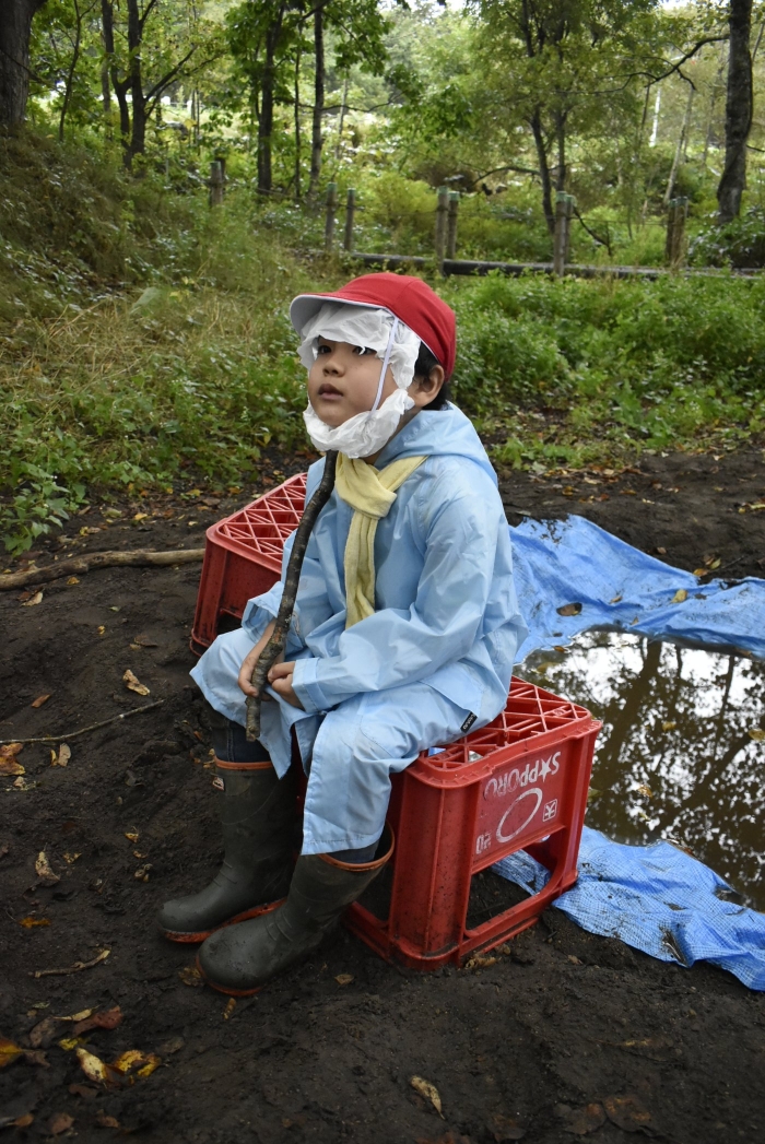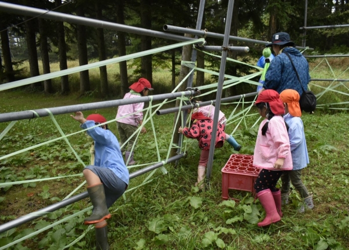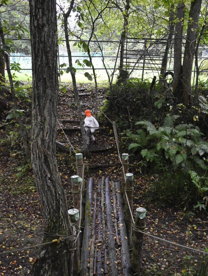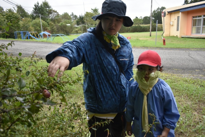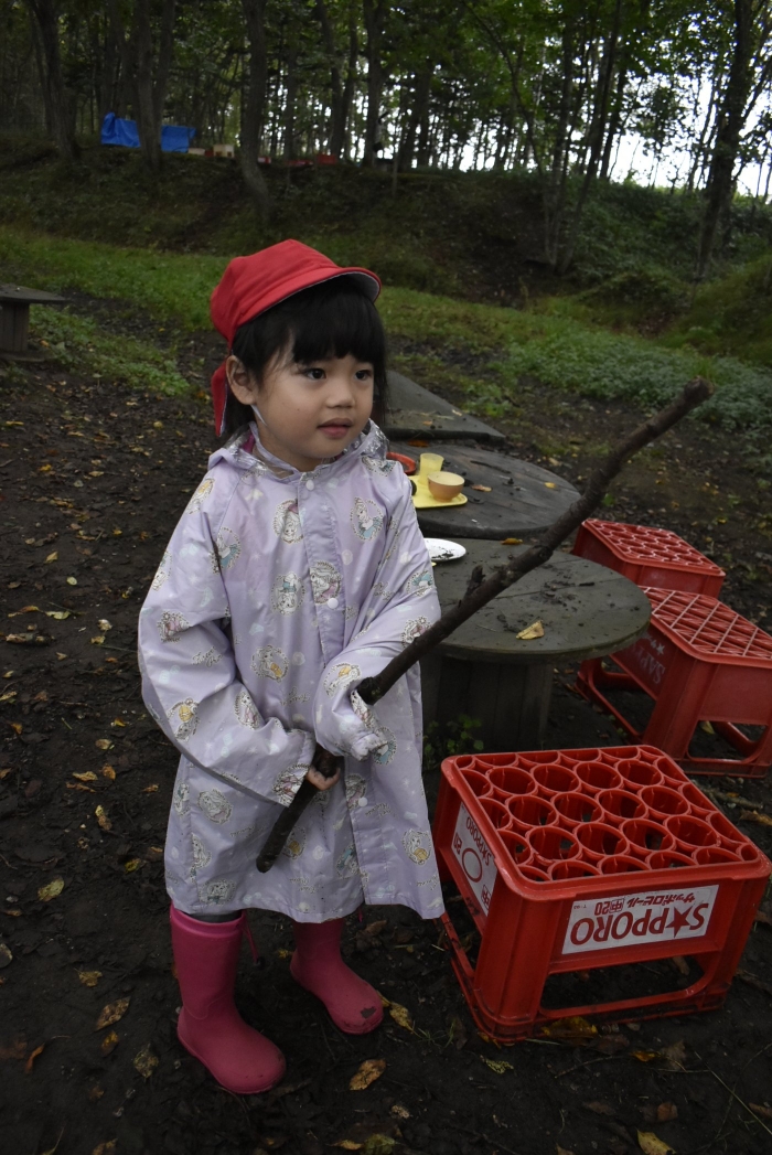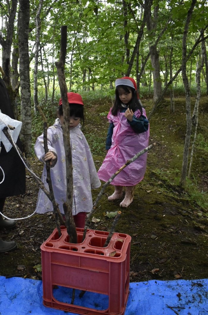 出来た衣装や武器を手に,今日も忍びの戦いをしようと戸外へ繰り出す年長児をみて,一緒に遊んで楽しかった思いのある年中児が仲間に加わったり,興味を引かれ初めて仲間入りする年中児の姿もありました。友達が考えたルールで遊ぶとやっぱり楽しい!と相手のことを認めたり,チームを組んでの戦いに楽しさを見出したり,互いに試行錯誤しながら遊びを展開していた子ども達です。