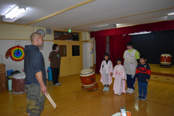 今回は,贅沢に年長組遊戯のためだけにお越しいただきましたが,12月には全園児での出前授業『和太鼓』体験を予定しています。武藤師匠,お忙しい中ですが,またどうぞ宜しくお願いいたします。