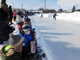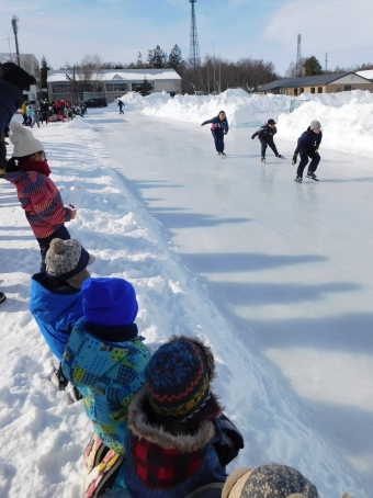 その後,中学校から小学校へ赴き,『 スケート記録会』の応援へ行ってきました。