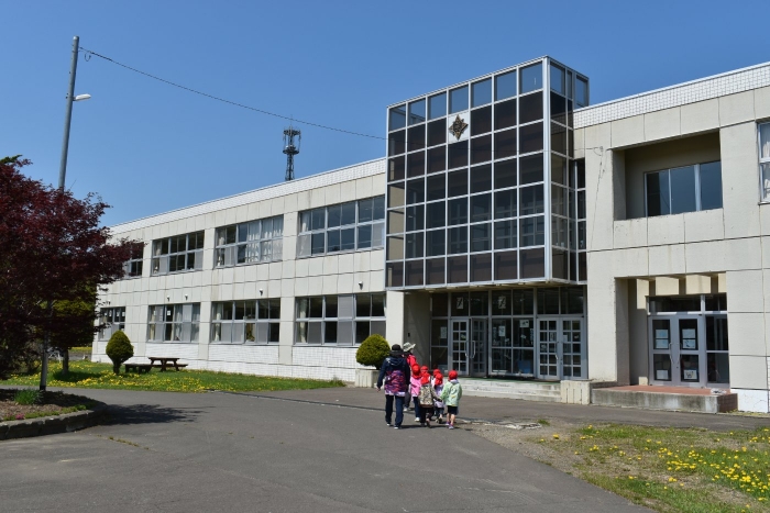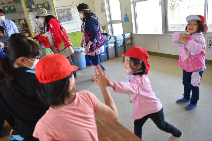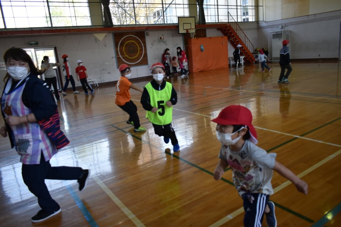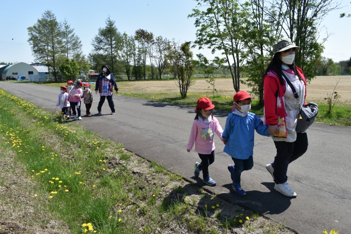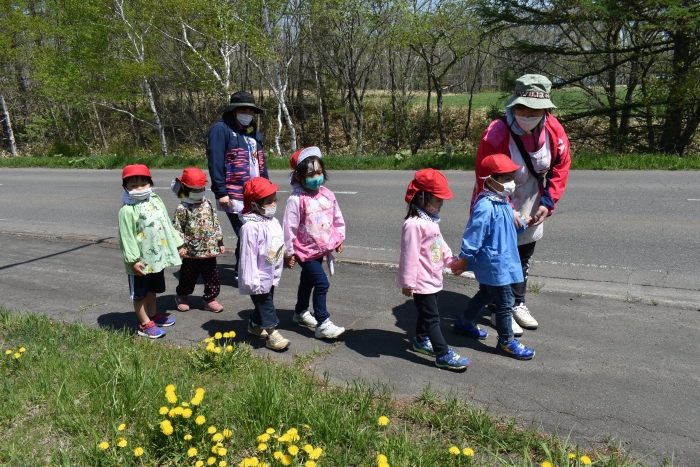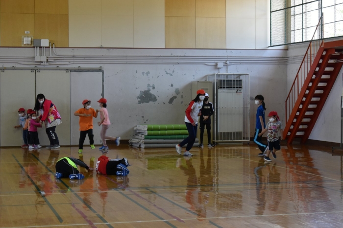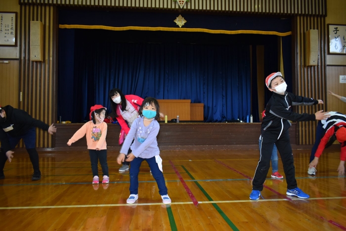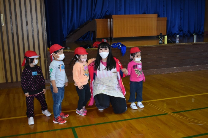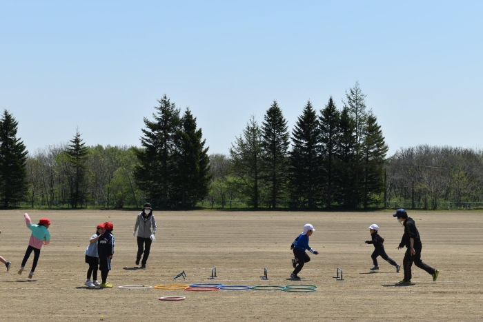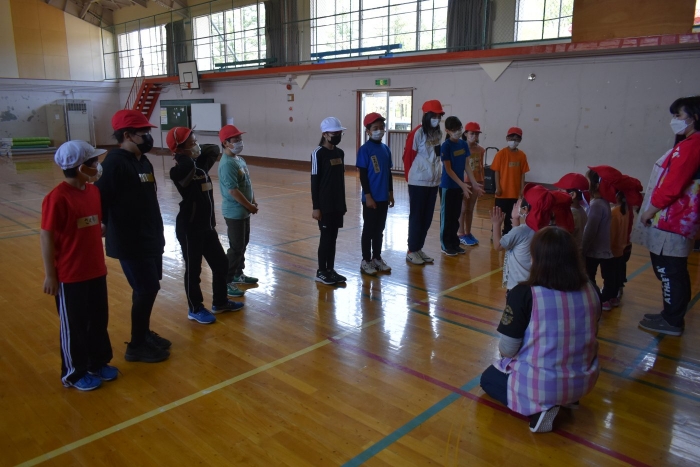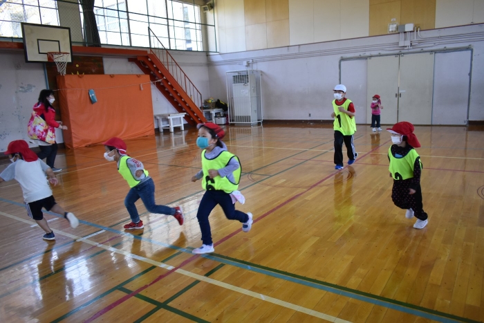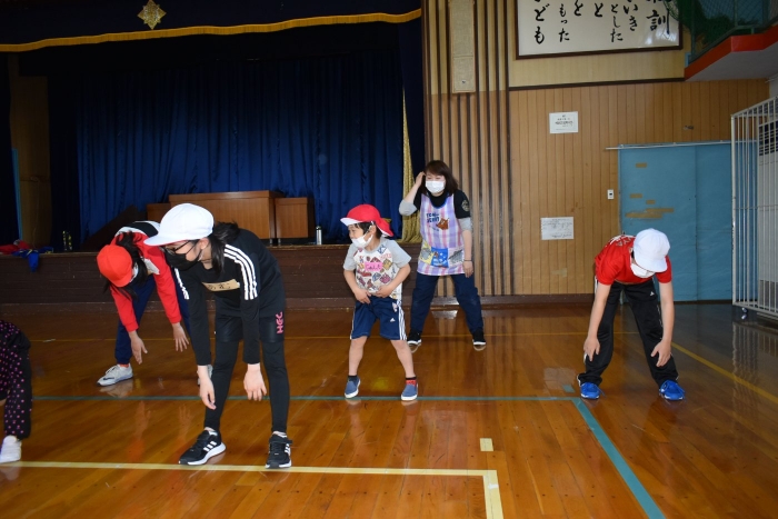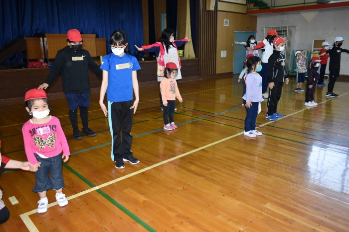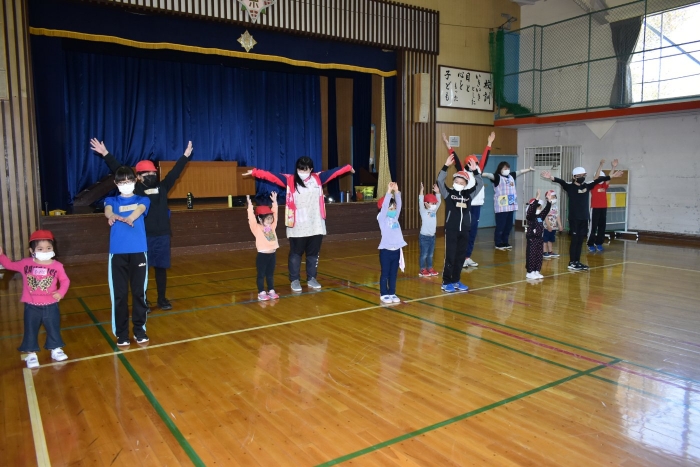 6月4日(土)開催『中西別幼稚園・中西別小学校合同運動会』に向け,遊びの中でも「かけっこ」や「リレー」「フォークダンス」を楽しんだり,「行進」「駆足」など運動会に関連した動きに触れたりして活動しています。 今日は,小学校5・6年生に『ラジオ体操』を教えてもらったり,『糸まき』を一緒に踊ろうと,全園児で小学校に出掛けました。以前,交通安全教室や公園へ出掛けた際とは違っている景色に心を動かしたり,小学校のことを話題にしたりなど,道中も期待に胸をはずませながら小学校へ!  初めて校舎内に入る子もいて緊張している様子もありましたが,小学生や先生方が温かく出迎えてくれ,ちょっと一安心。運動会の活動の前に,自己紹介や園児に馴染みのある遊び『氷鬼ごっこ』で一緒に遊んだり,園児の目線に合わせ優しく関わってくれたことで,少しずつ気持ちもほぐれていった子ども達です。来週からは小学校グランドでの運動会練習が始まったり,小学校読み聞かせに参加させてもらったしますが,交流の機会を有意義に活用し,学校という環境や関わりのある人に親しみがもてるような援助をしていきたいと思います。