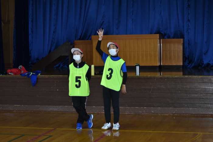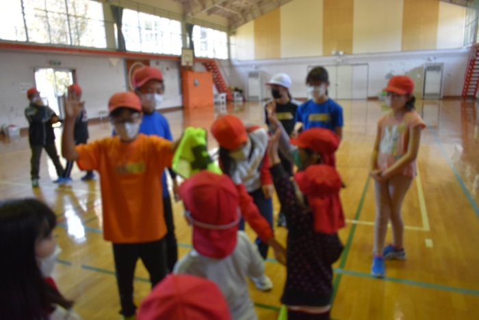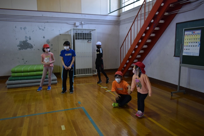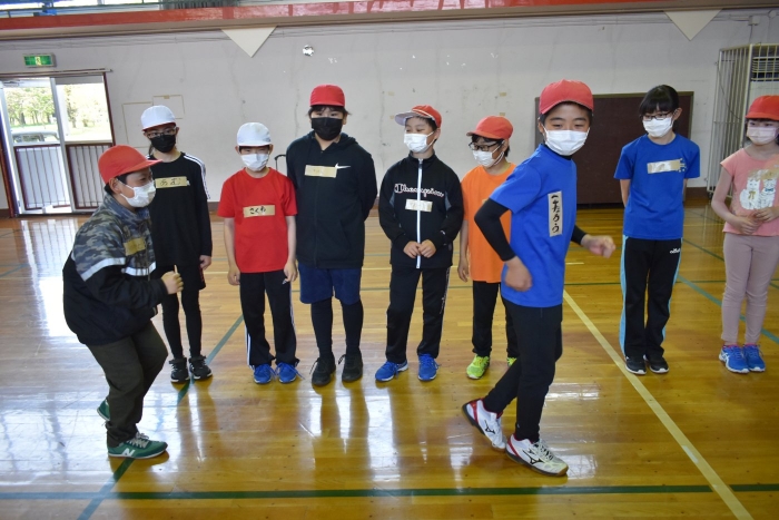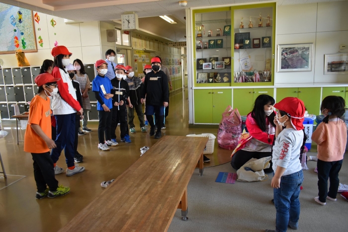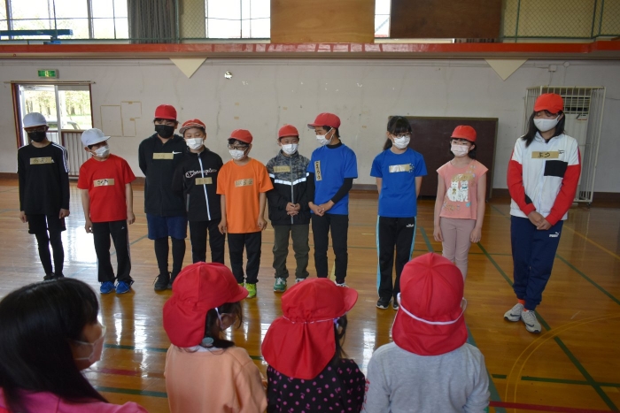 運動会に向け小学校5・6年生交流,交通安全のぼり旗