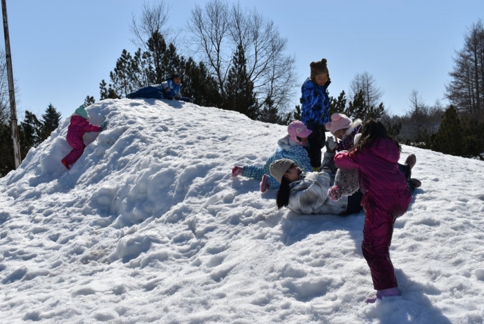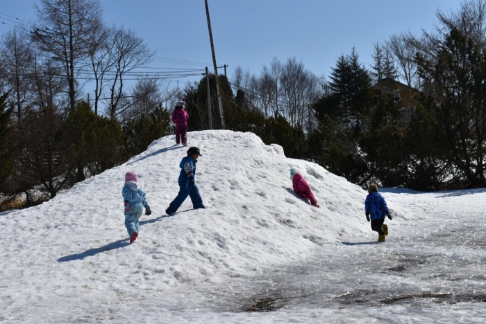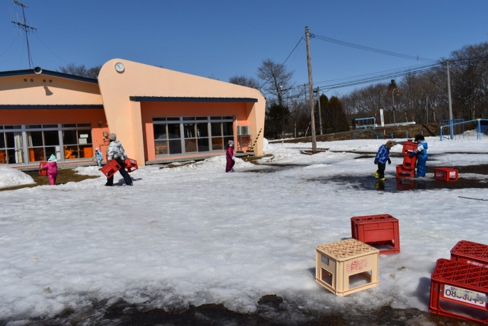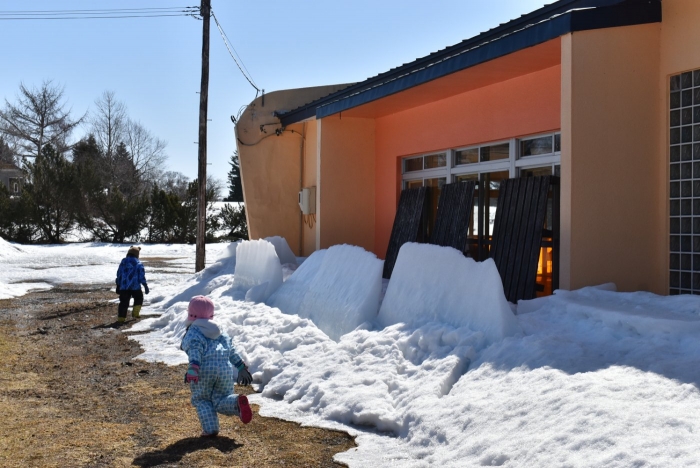温かな日差しを感じるようになり,辺りが段々と春景色へ。1月から降り重なっていた園舎屋根の雪氷も,すっかり無くなりました。