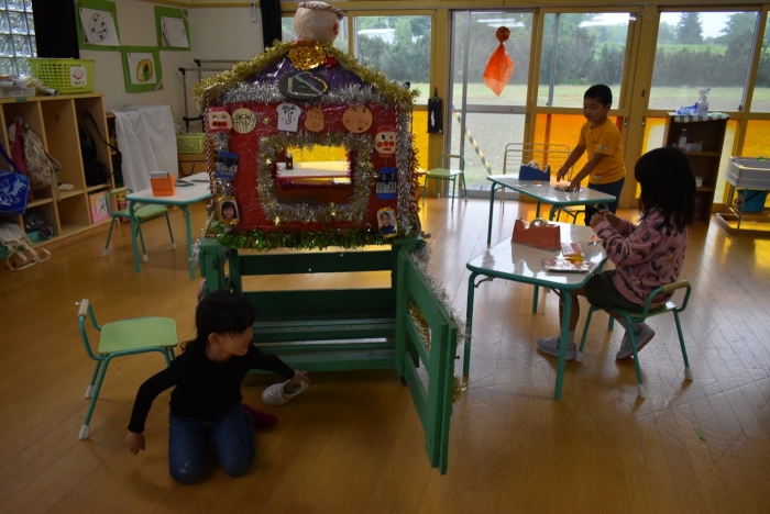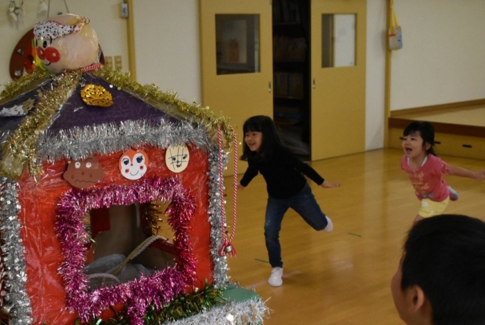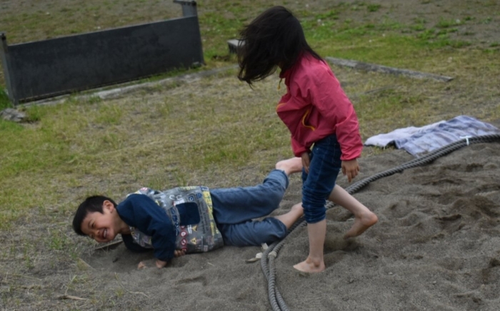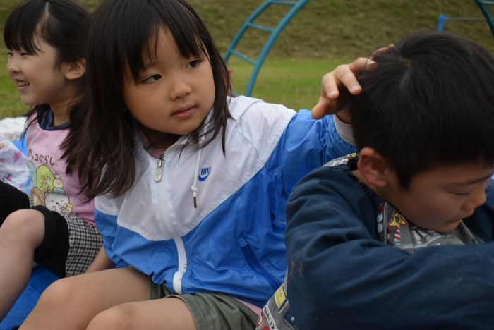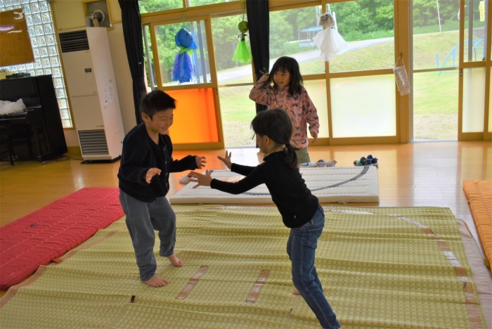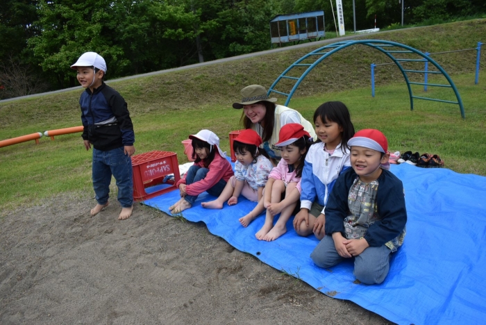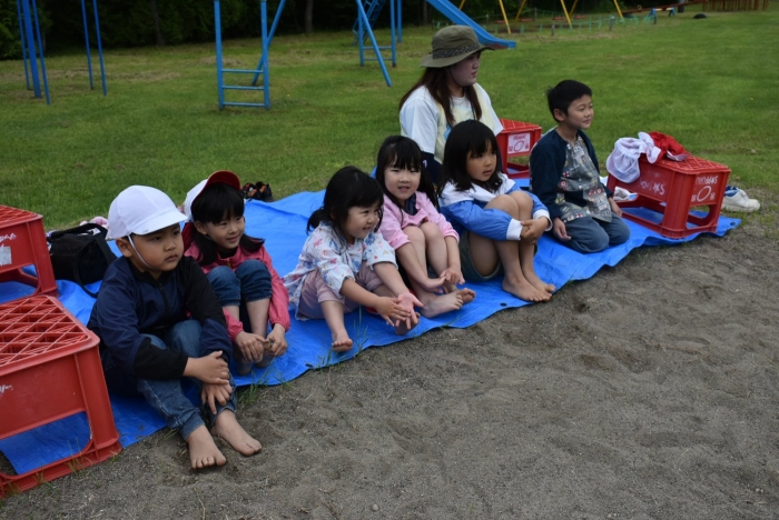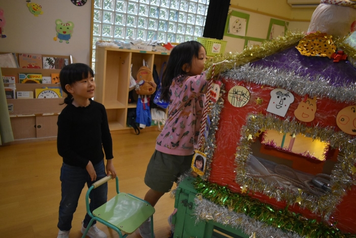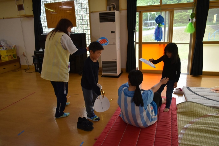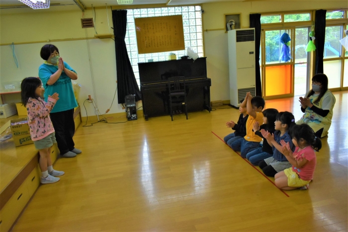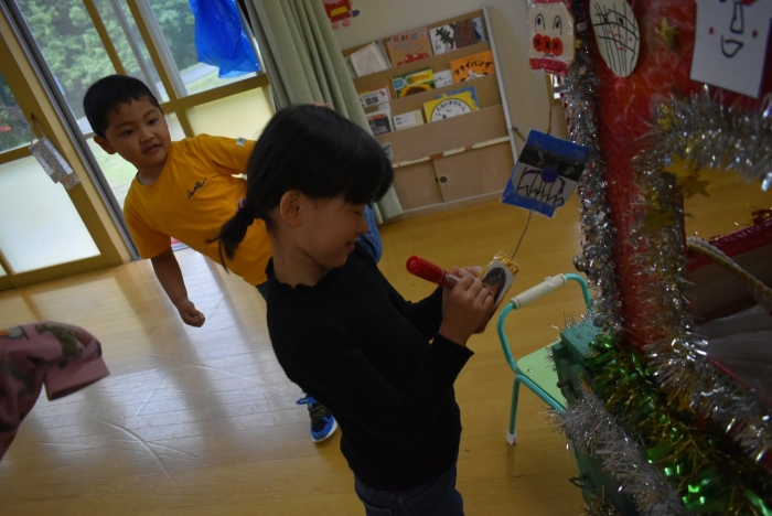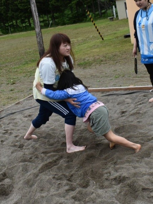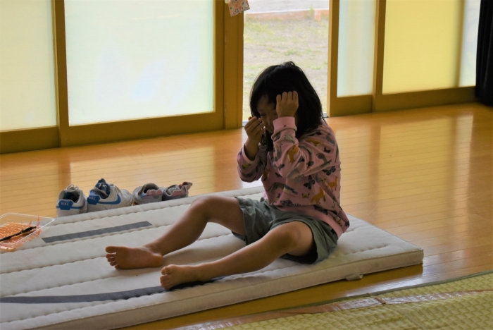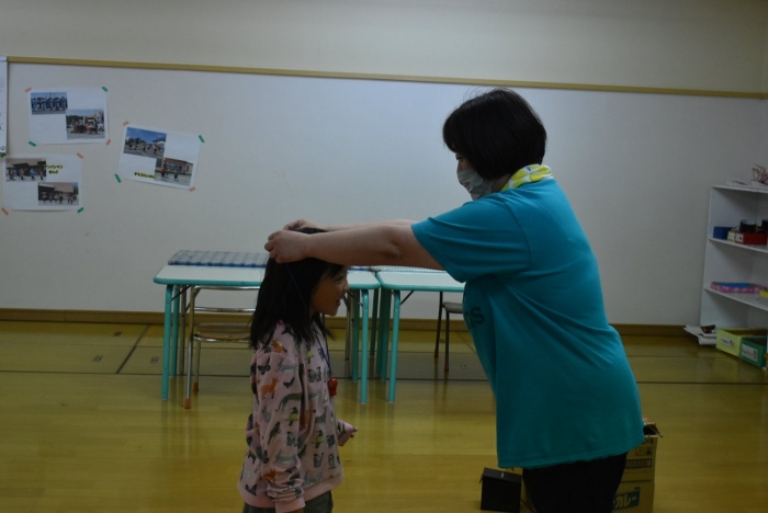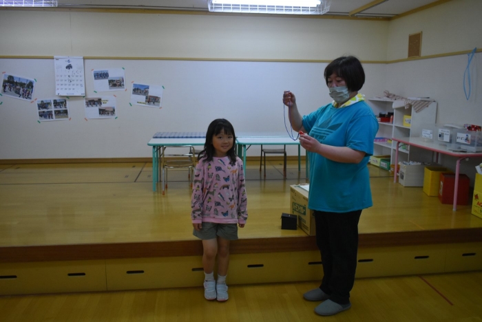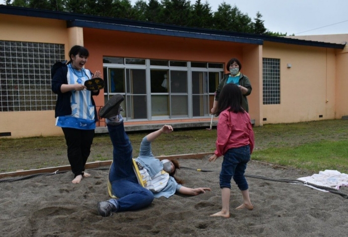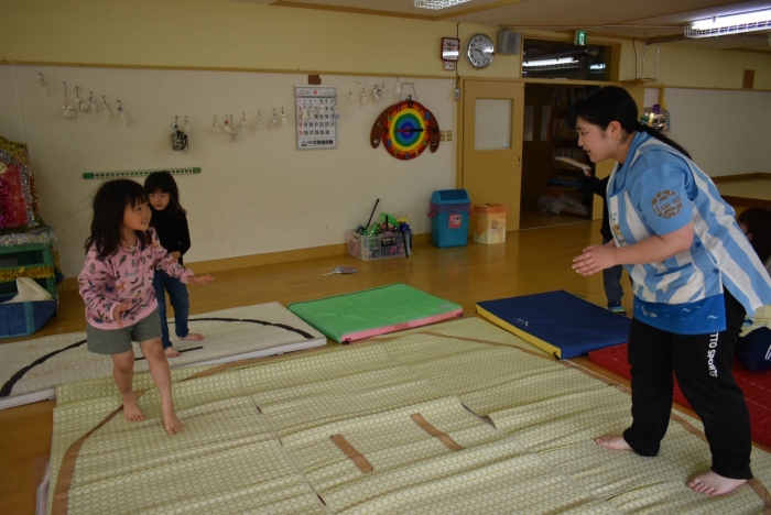 今日は,お祭リーダーへ笛を授与,リーダーの合図でアンパンマン音頭を踊ったり,当日着る法被合わせを行ったりしました。年長組では,燃えに燃えている相撲で四股名を相談! それを聞いた年少・年中組も賛同し,それぞれ自分の名前とマッチングさせた四股名を命名していました。そして,園庭の砂場土俵で取組も行いました。勝敗がつきものの相撲取組。負けた悔しさで涙がこぼれたり歯を食いしばったりしながも,終わりの礼をしっかりと行い,次の取組に挑んだり友達に声援を送ったりする姿には,心を動かされるものがありました。子ども達の成長した姿を,ぜひ保護者の方,地域の方にも見てもらえればと思います。