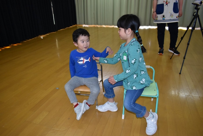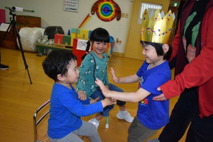 仲よしの年少児同士でハイタッチ☆彡 その姿を見守る年長児の眼差しが ステキすぎます