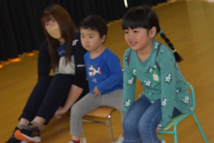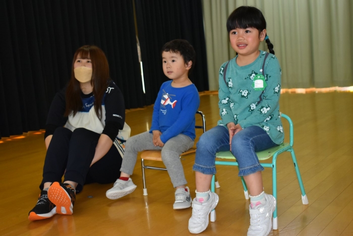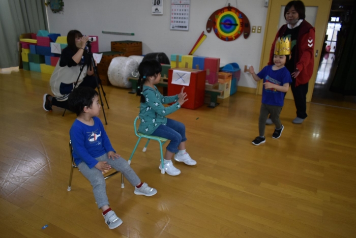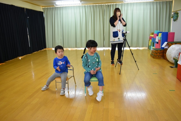 誕生会リハーサル風景④ ~ 待機している誕生児の名前を呼ぶ練習