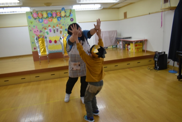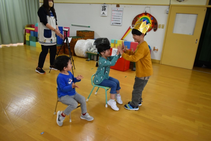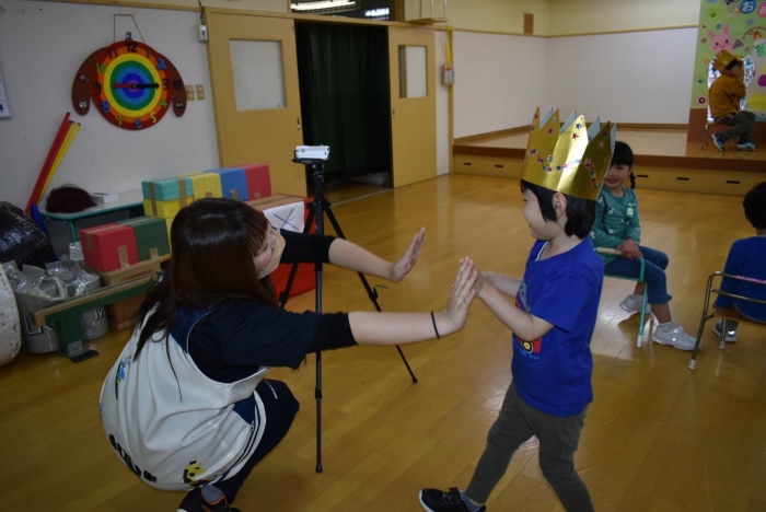誕生会リハーサル風景③ ~ 先生とハイタッチ!!
