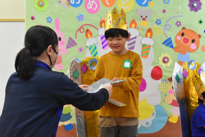 自己紹介&質問コーナーの次は,誕生日絵本&プレゼント贈呈