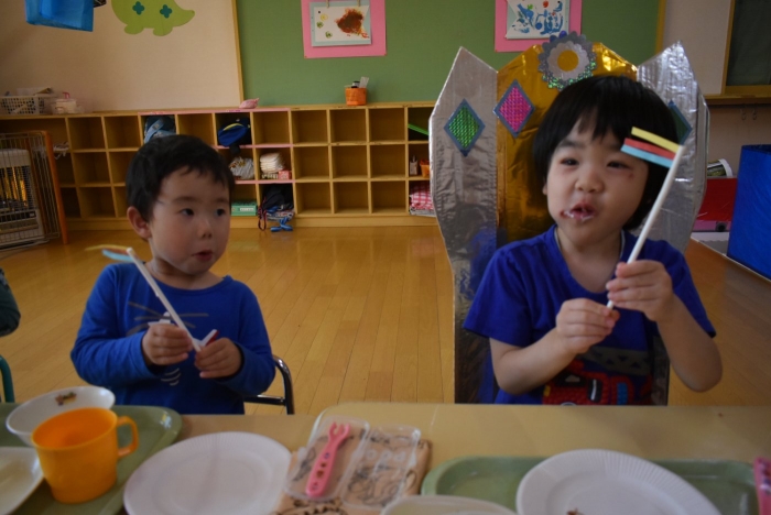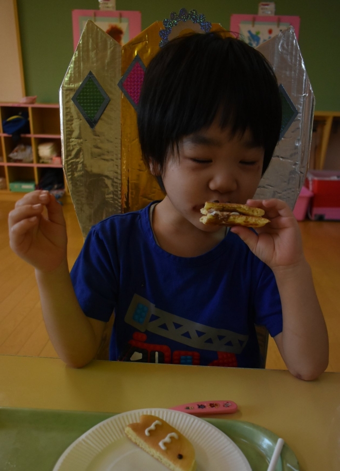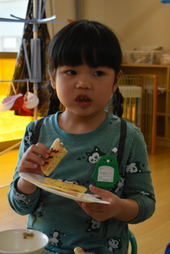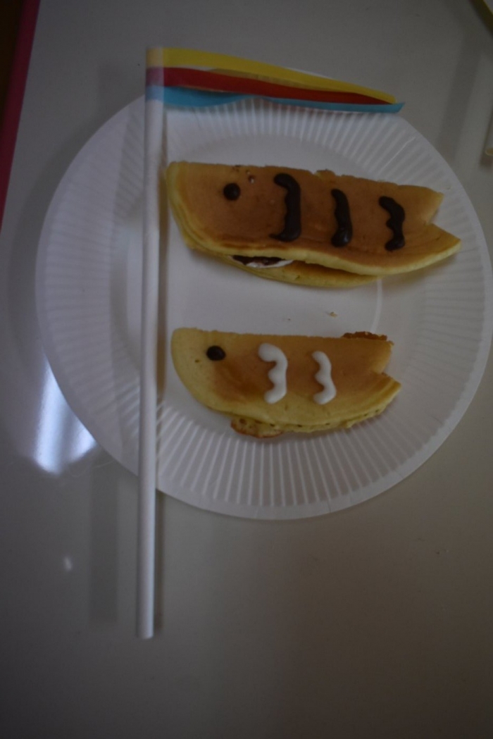 誕生会のおやつは『鯉のぼりパンケーキ』 真鯉と緋鯉で 味が違います!