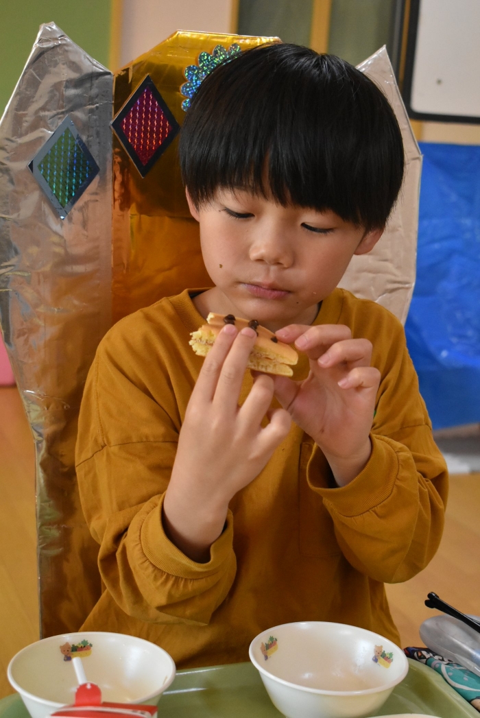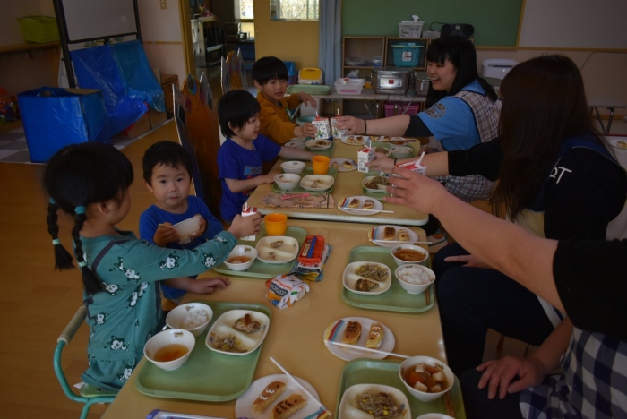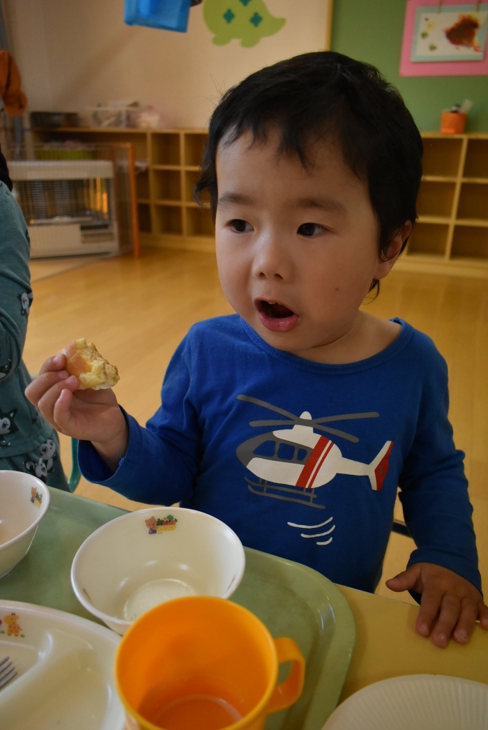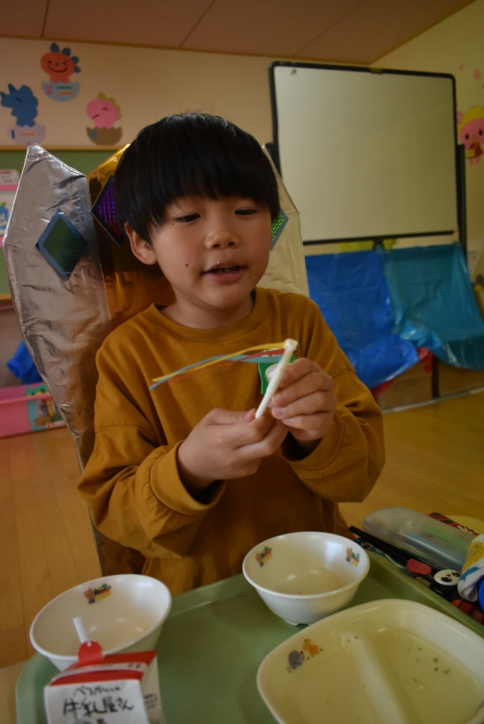 おやつに早くたどり着きたい!! 黙々と給食を食べ進めます(笑)