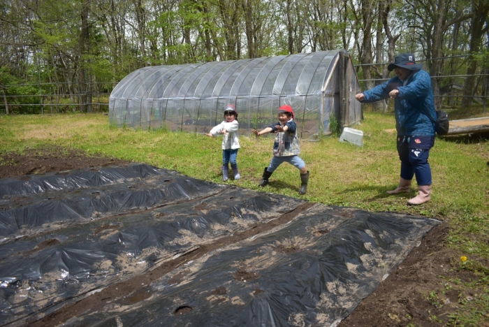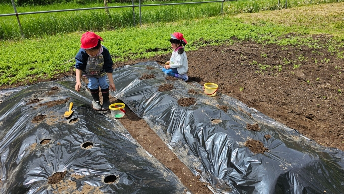 絶好の畑作業日和 ☀ 全園児でジャガイモ植え!
