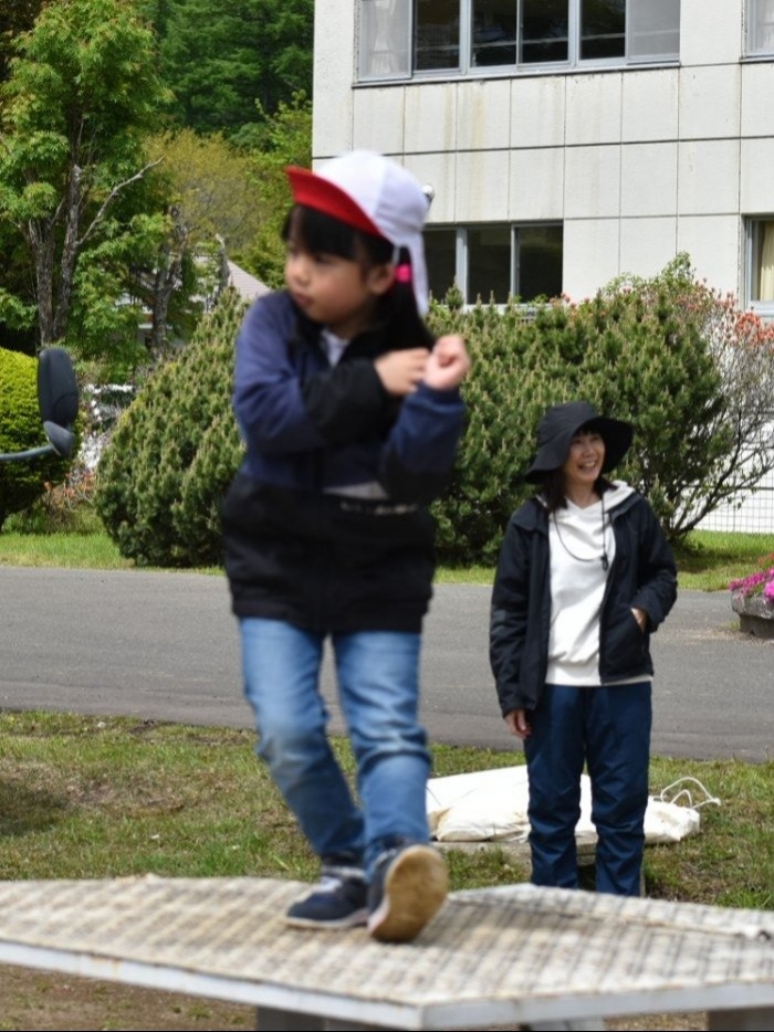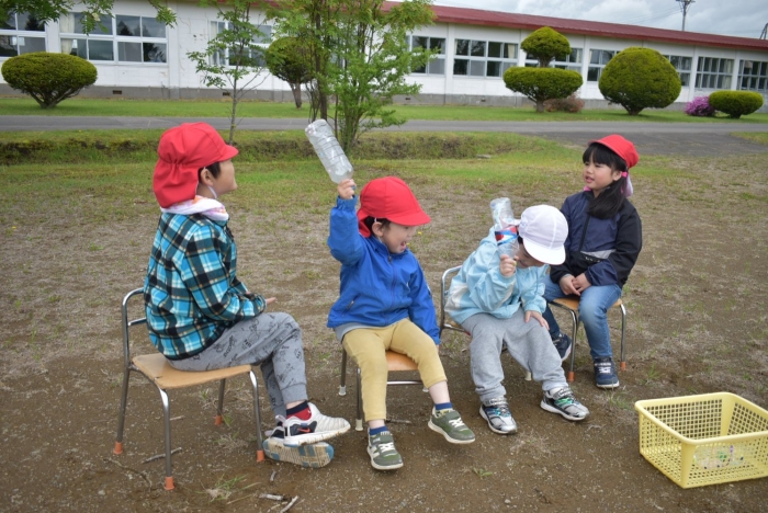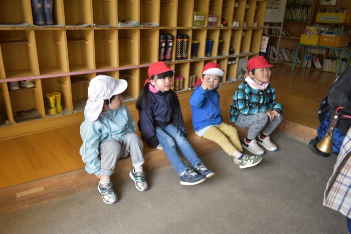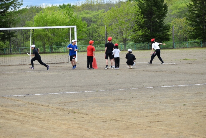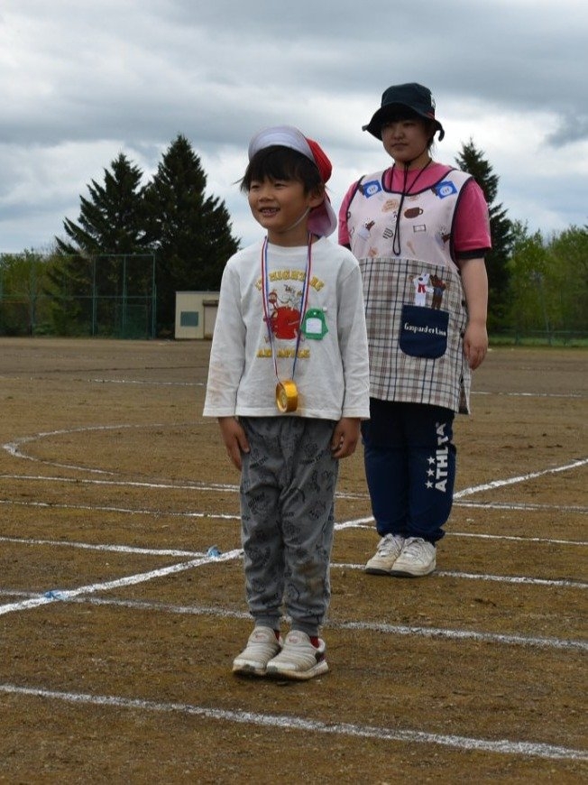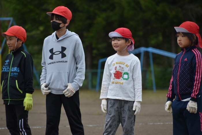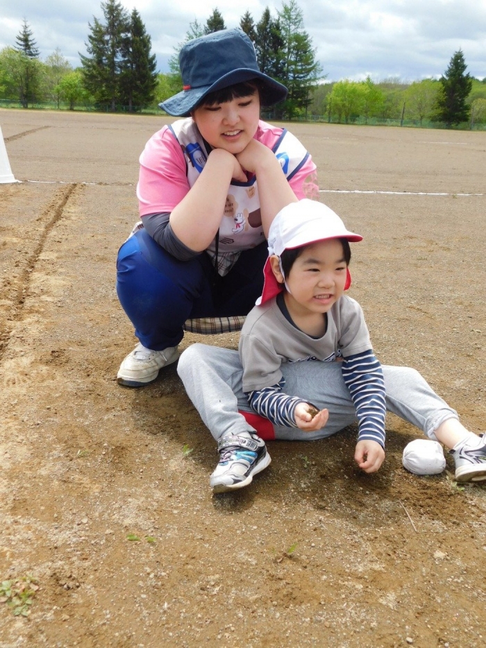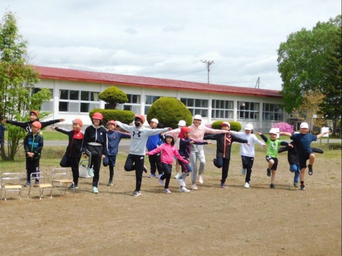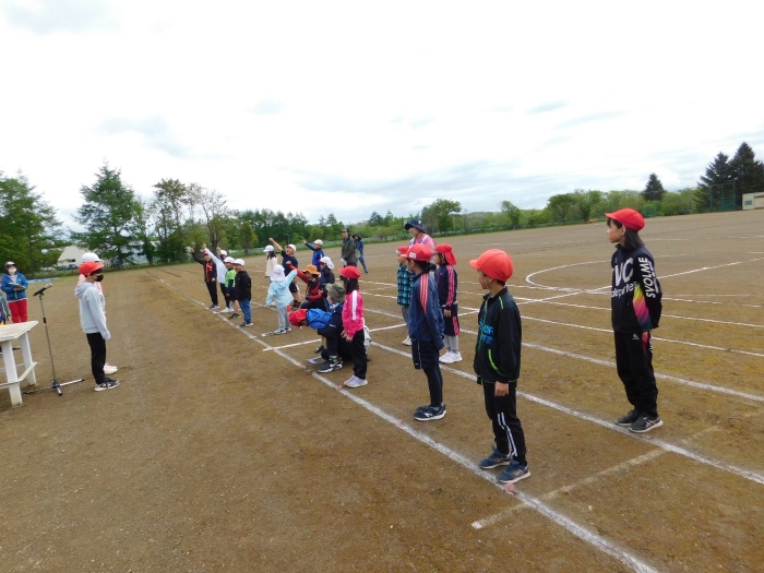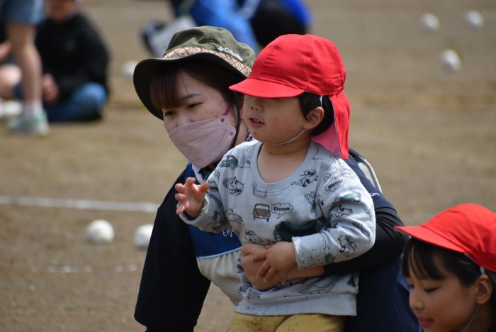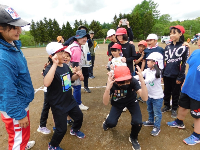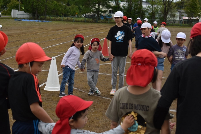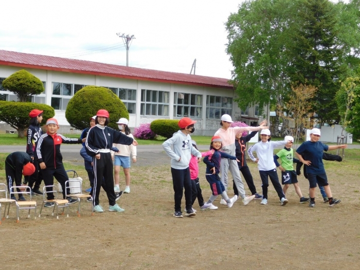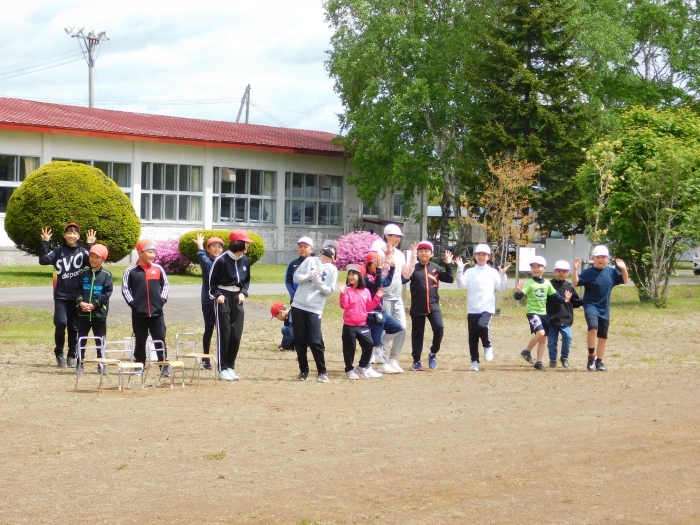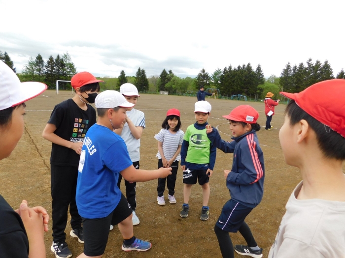 全体練習では,小学生の司会・進行の下,開・閉会式,ラジオ体操,ディズニー体操,かけっこ,フォークダンス,小学生企画3種目,紅白対抗リレーの10種目を実施! 通しでの練習は初めてでしたが,年長組は,年少児を気に掛けながら集合・退場をしたり,小学生とともに最後まで全力で取り組む姿がありました。緊張しながらも,代表としての意識・自覚をもって前に立つ姿も立派でした。年少児にとっては,ハードルの高い全体練習でしたが,集中が途切れても曲がかかると覚醒!?(笑),年長児や小学生に愛しまれながら競技を楽しんでいました。小学生との継続的な交流で,ほのぼの場面がたくさんみられている運動会練習です。