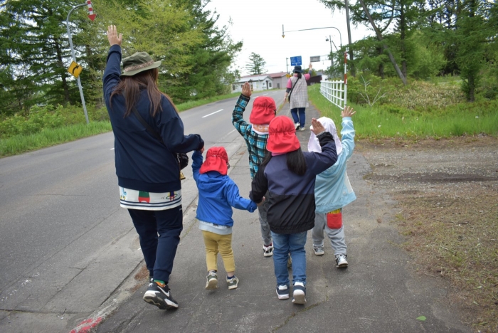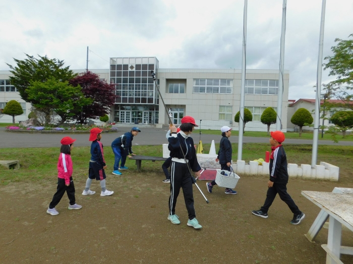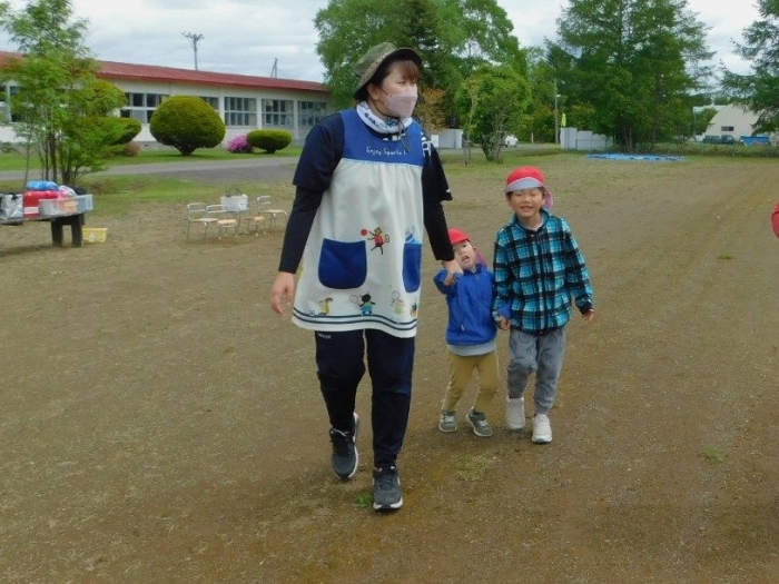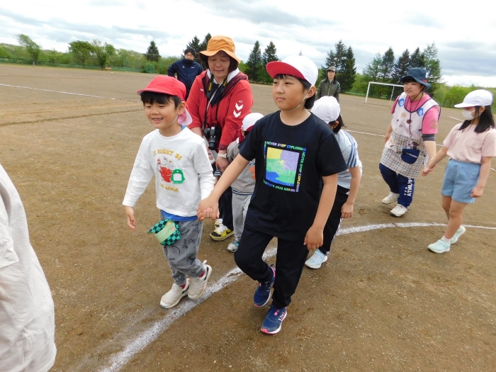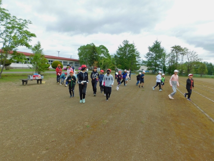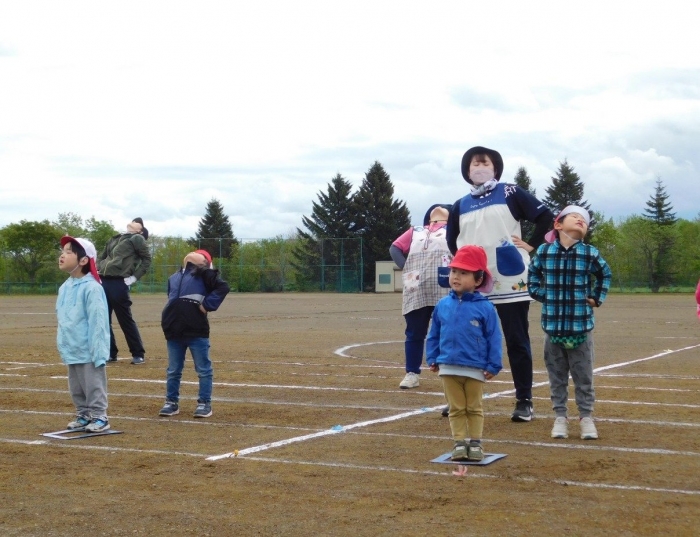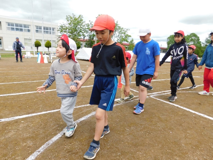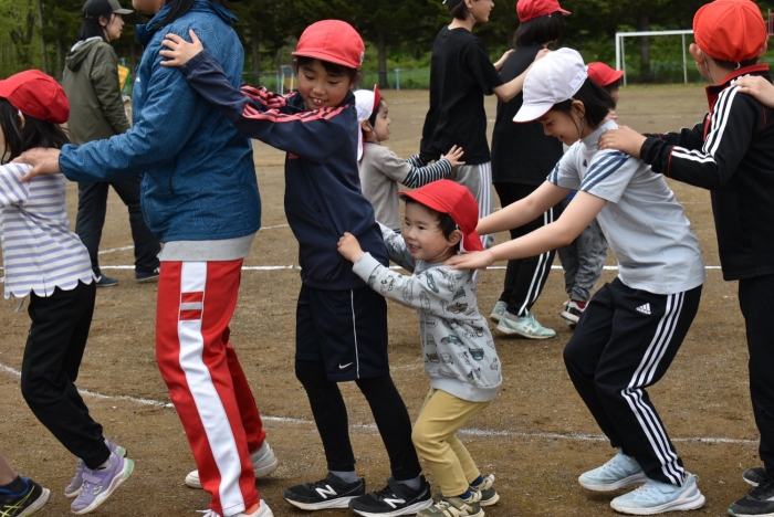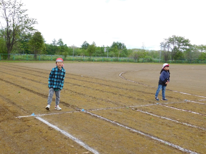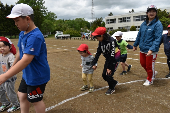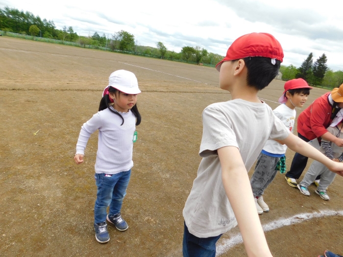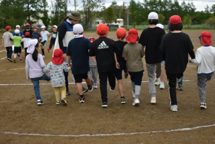 5/30(木)…間近に迫った幼小合同運動会に向け,全体練習を行いました。最初は小学校へ行くだけでも疲れがみえていた年少児も,テンポアップで歩けるように☆彡 一緒に手をつないで歩く年長児の体力・筋力アップにもつながったようです(笑)
