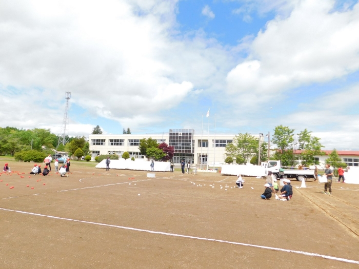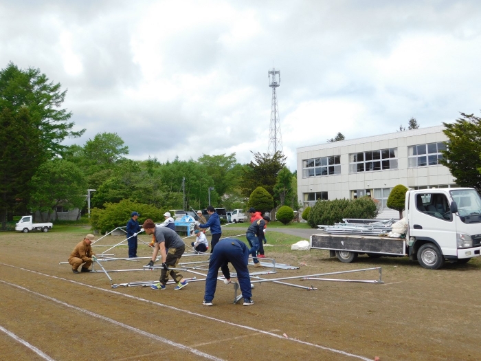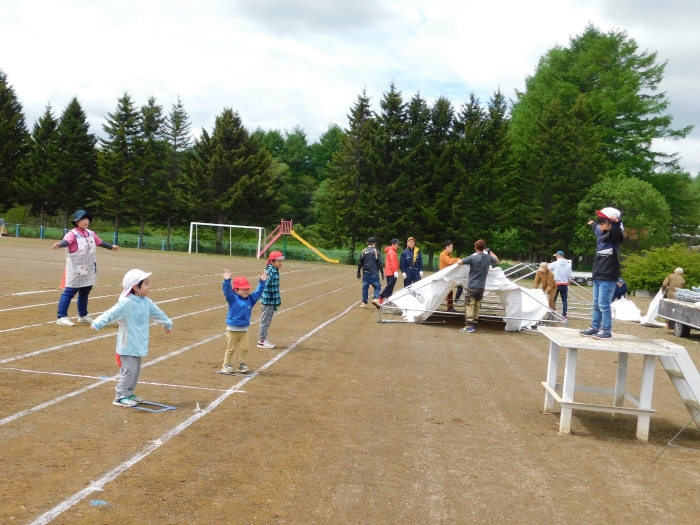 お父様方も入場!? 運動会 会場準備