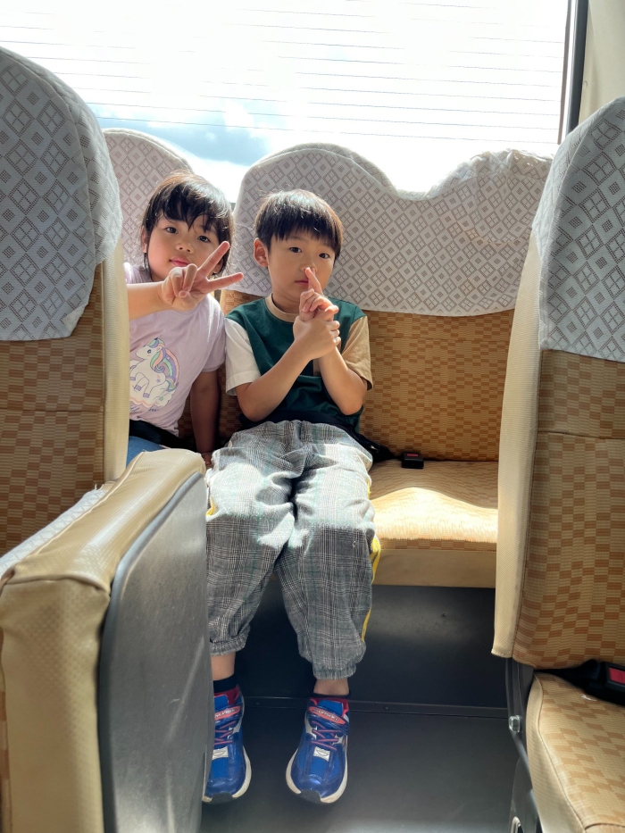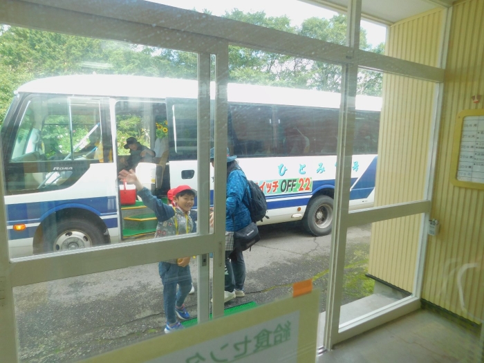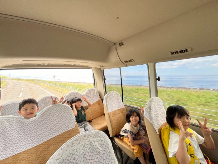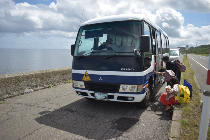 初となる校外学習での交流で,『床丹(雷床丹橋の砂浜)』までスクールバスに乗って行ってきました。始業式から ぐずつき模様の天候で実施が危ぶまれましたが,子ども達の熱い思いが伝わり,霧雨⇒曇⇒晴へ! 天の神様も味方につけた子ども達です(^^♪