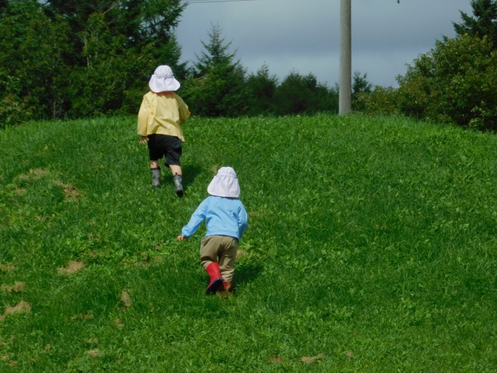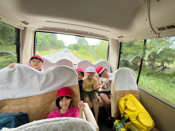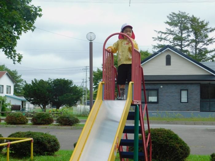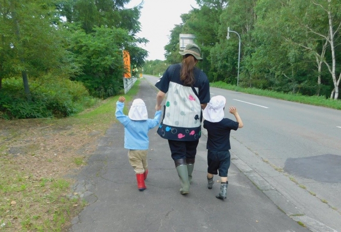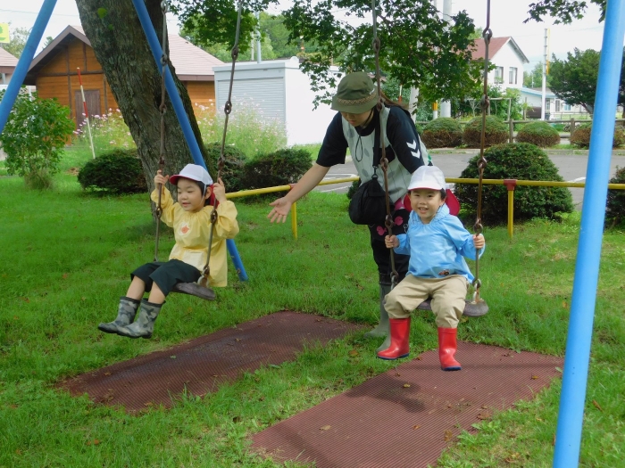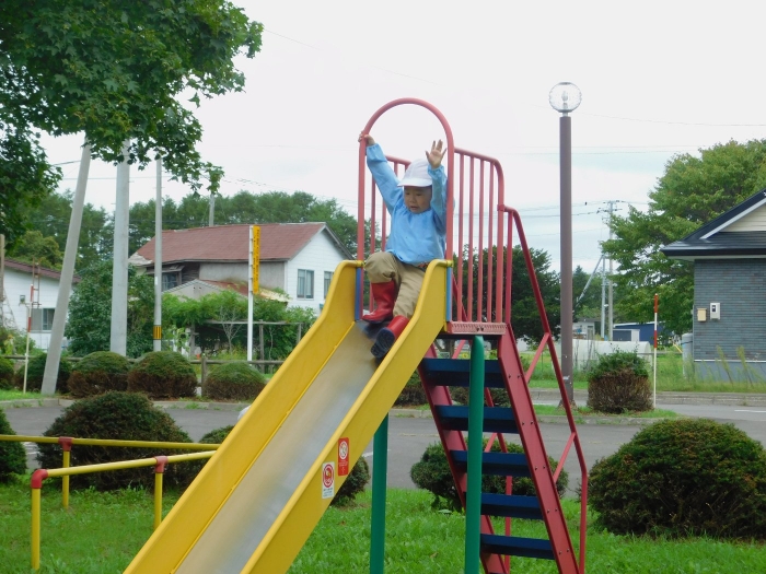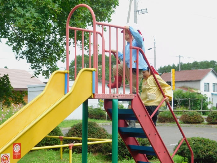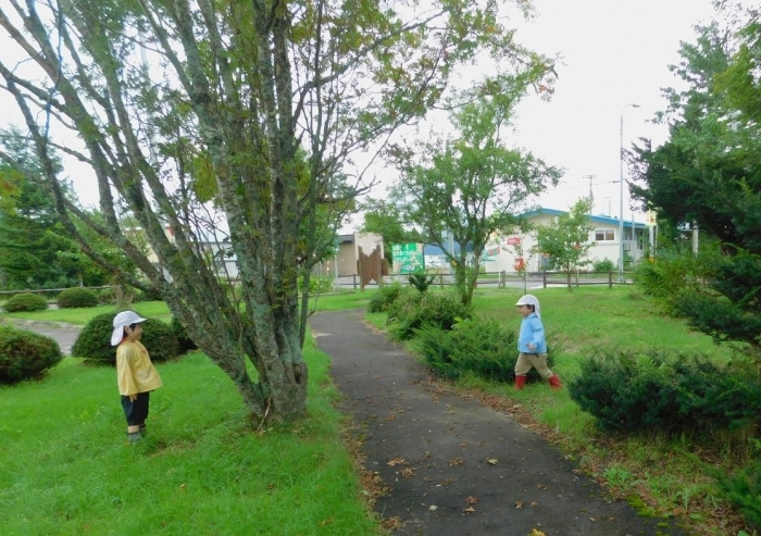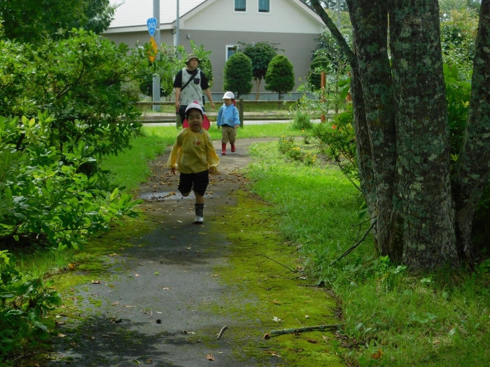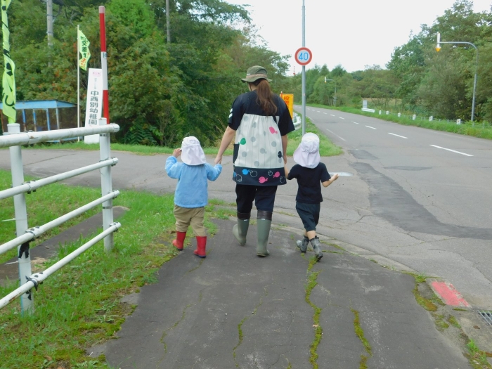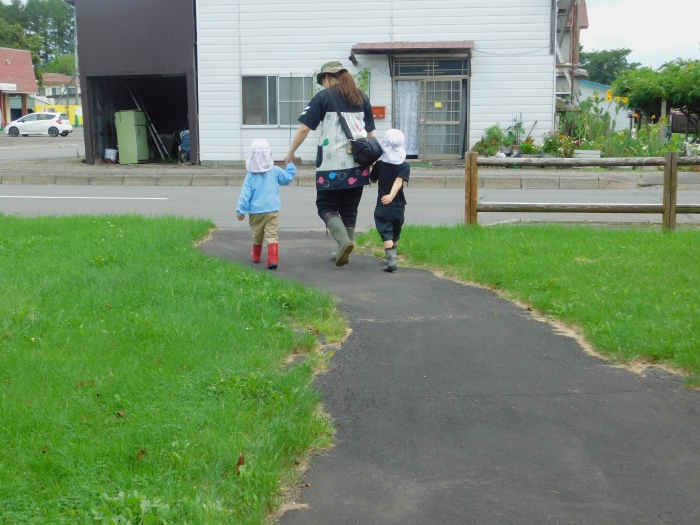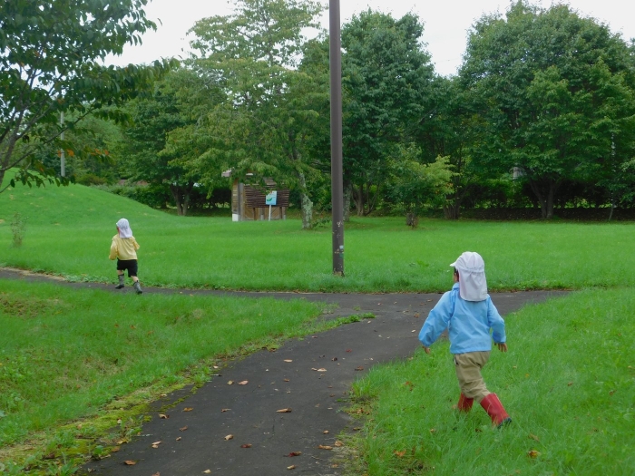 スクールバスに乗り出掛けた年長児を見送った後,年少児は中西別公園へ行ってきました! 年長児と一緒ではない長距離の散歩は初体験☆彡 BGMは『はじめてのおつかい』でしょうか (^^♪