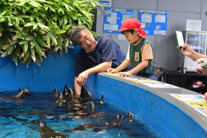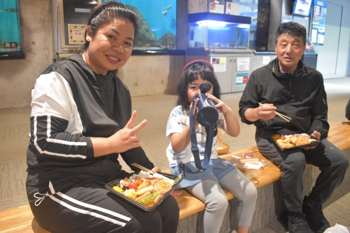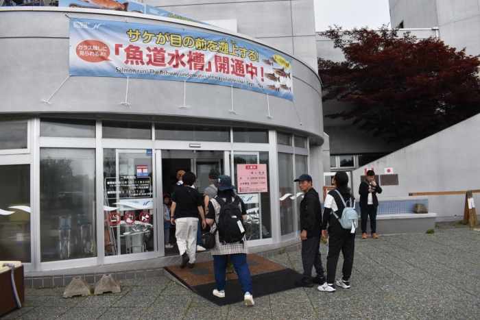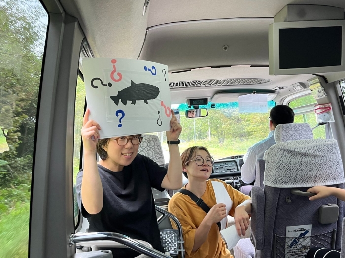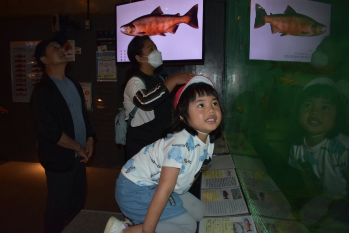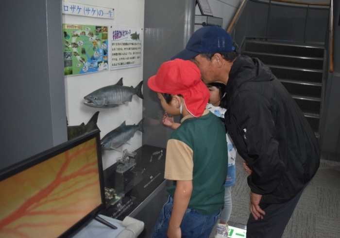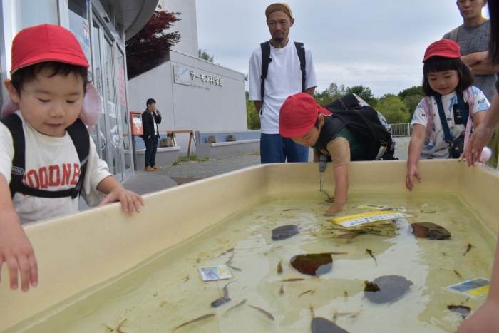 今日は,子ども達が心待ちにしていた『親子バス遠足』がありました。前日には,目的地『標津サーモン科学館』行きのバス切符も販売され,♪うきうき ♫わくわく感いっぱいで家族分の切符も購入していた子ども達。朝は少しテンションが低めでしたが,出発式で元気な「イエーイ!!」の言葉を引き出してからバスに乗り込みました。