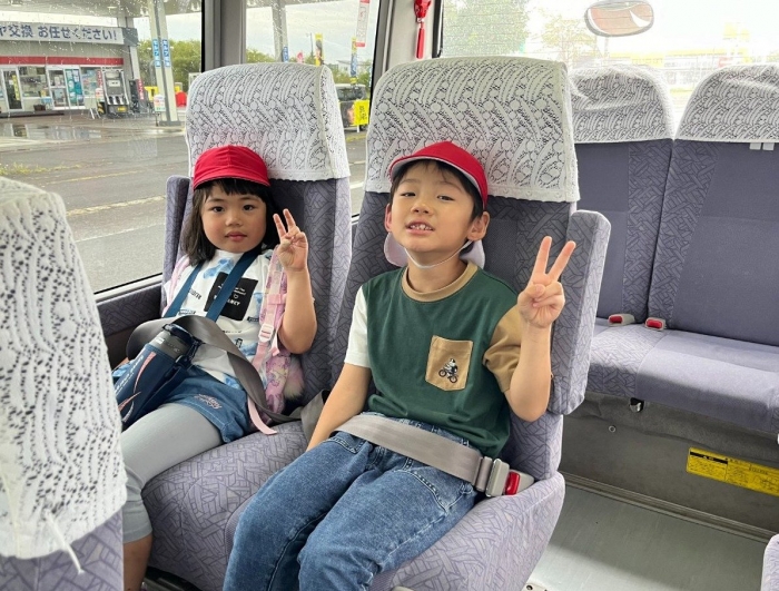 友達や家族と一緒に乗るバス,そこから眺める景色,車内での会話は,きっと格別だったことでしょう! 家族で訪れたことのある場所も友達と一緒だと一味違ったり,幼稚園では出来ない体験を味わうことができたりし,生き生きとした表情を見せていた子ども達です。雨がパラついてきたため,戸外での体験ができなかったのは少し残念でしたね。今度また家族で訪れ,是非お子さんの心残りを解消してきてください。