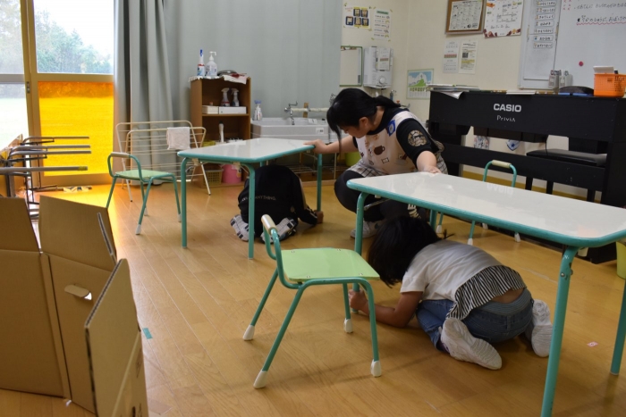 今回の訓練を通し,子ども達・職員とも改めて安全・避難行動の仕方を意識すること,防災学習で新たな知識を得ることができました。災害発生時のシュミレーションを行っておくことで,落ち着いて行動⇒命を守る行動につながります。園・学校・家庭,地域で協働し, 少しでも安心材料を揃えておきたいですね。
