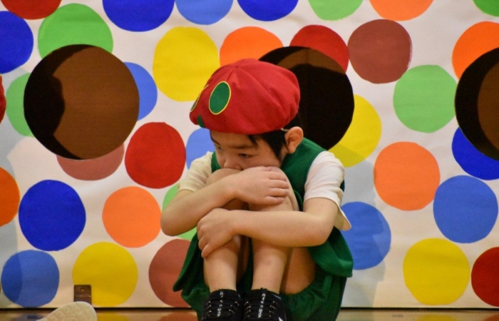 本番は,ステージにちょこんと座る姿,食べ物の穴からひょっこり顔を出す姿に,可愛いさ100倍! ひたすら食べ続けるあおむしになったり,トンネルの中で蛹になったり,羽ばたかない蝶でフィナーレを迎えるなど,すずらんワールドを炸裂させていました。日々変わる すずらん組劇場,「今日は,こうきたか(笑)」という姿がいろいろありますので,練習風景もご覧ください。
