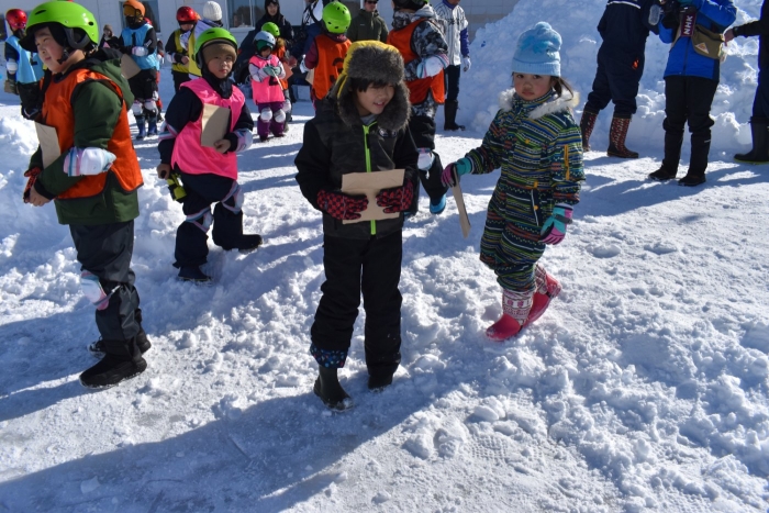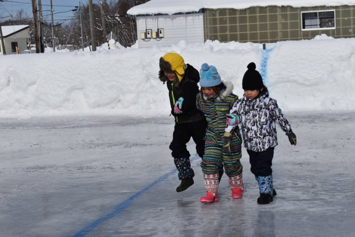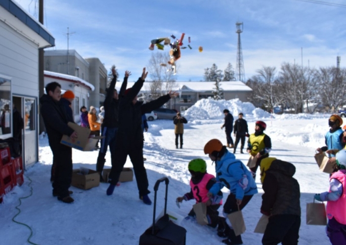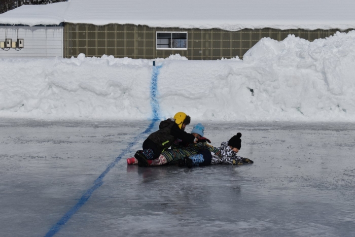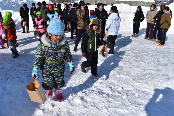 閉会式では,代表の園児,児童,生徒が感想を伝えたのですが,心がこもった言葉にあふれていて,とても心に染みました。その言葉を聞き,相槌を打ったり大きな拍手を送ったりする子ども達,,保護者の方の姿も素敵で,中西っ子,中西別ってあったかいな~,素敵だな~と,しみじみ感じました。そして,閉会後には子ども達にサプライズのお楽しみ,子ども育成会からの『お菓子・カップ麺まき』もあり,幸せいっぱい!思い出いっぱい!の長ぐつアイスホッケー交流会となりました。拾ったお菓子を年少児にもあげよう♫  自然に,そんな言葉を口にする年長児の姿にも心が和みました。