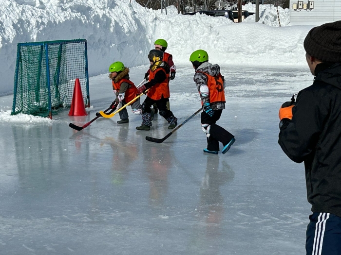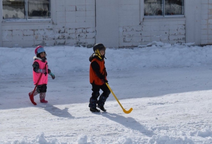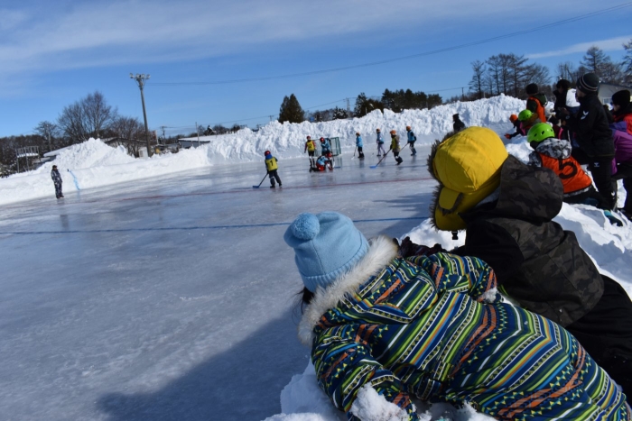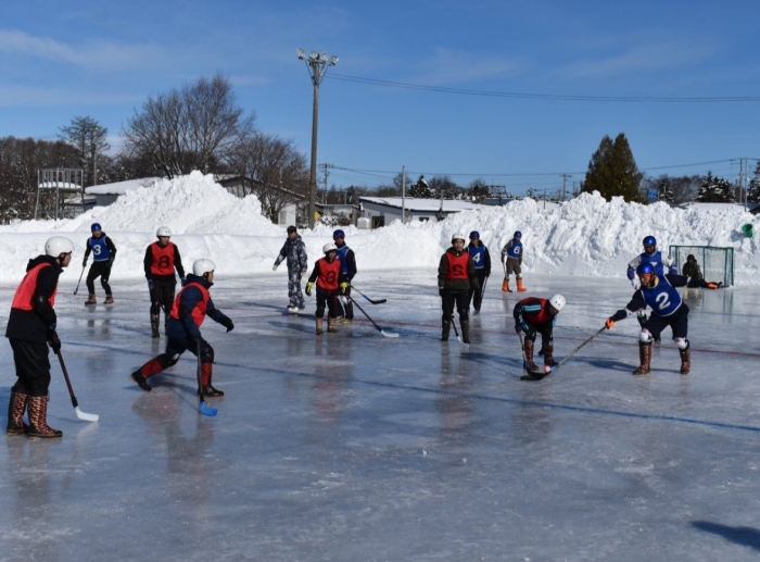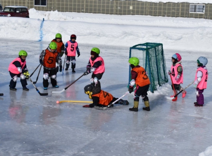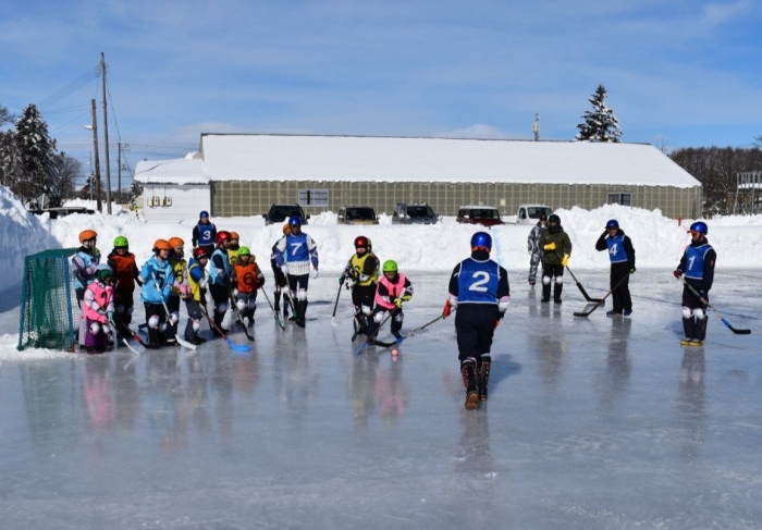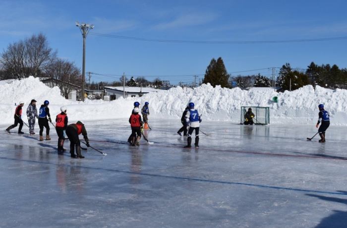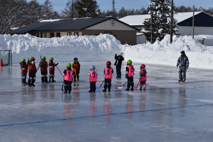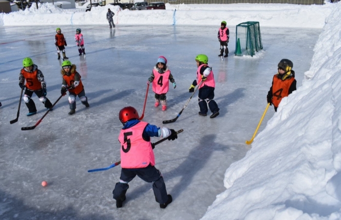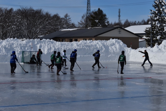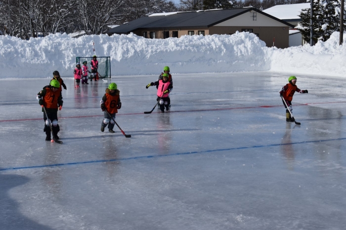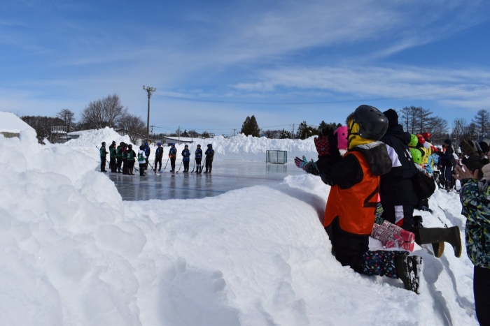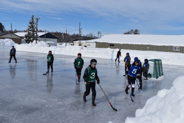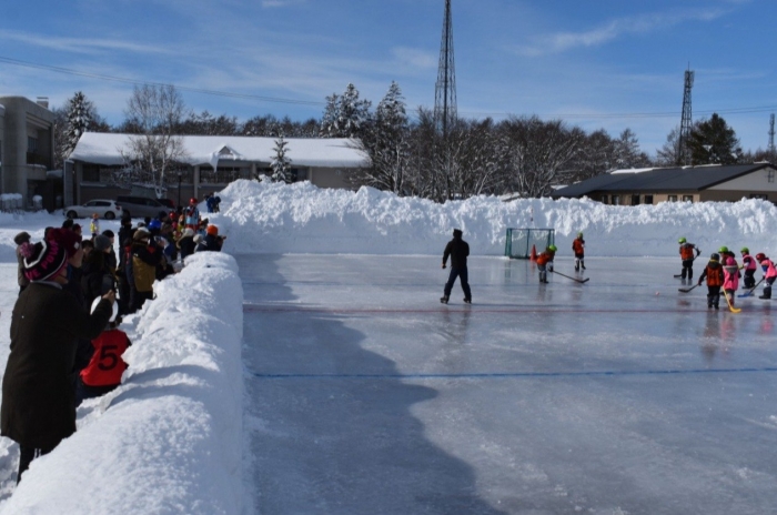閉園・閉校記念『長ぐつアイスホッケー交流会』が開催されました。例年にない暖冬,前々日には暴風雪という状況の中,役員の方を中心にリンクをベストコンディションに整えてくださった保護者の皆様には,心より敬意を表します。長年親しまれてきた中西別伝統の長靴アイスホッケー,中西別幼小中で行う最後の交流会は このリンクで! そんな熱い思いが伝わってきました。