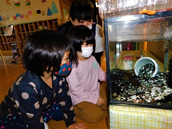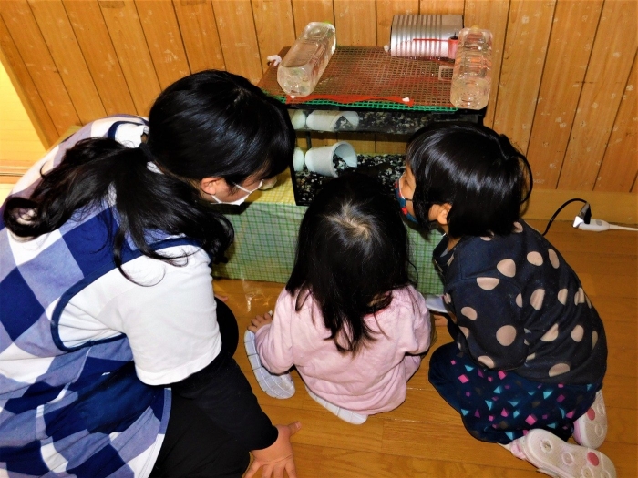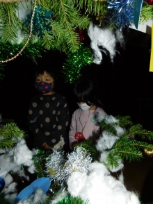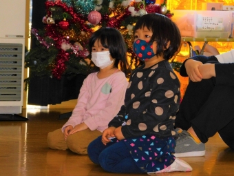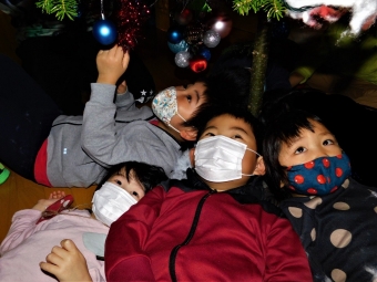 寄贈していただいた原木ツリーにも飾付けをし,今日はカウントダウンで『点灯式』を行いました。薄暗い遊戯室の中,幻想的に輝くクリスマスツリーにうっとりする子ども達。 ツリーの下からもじっくり見上げ,その美しさを友達同士で共感し合っていました。もうそろそろ,🎅サンタさんの鈴の音が,聞こえてきそうですね。