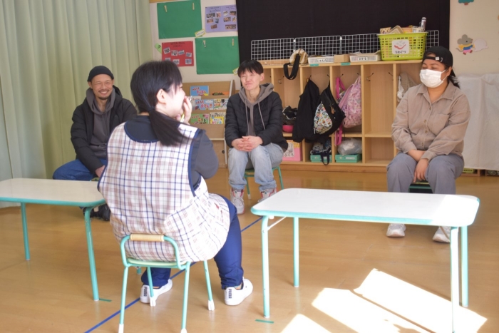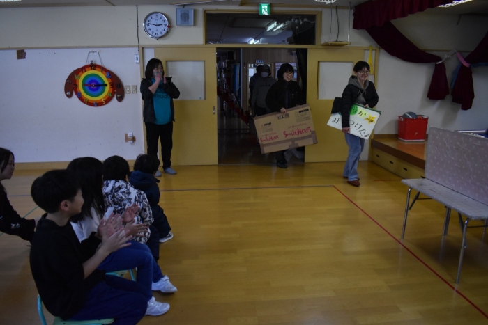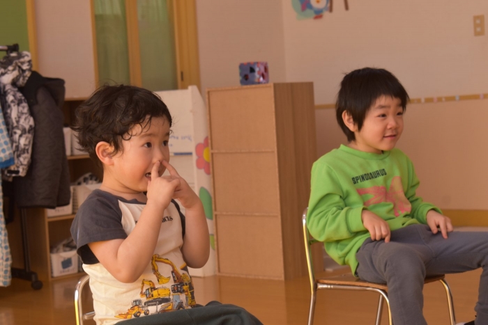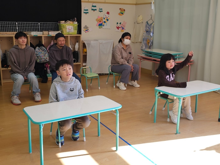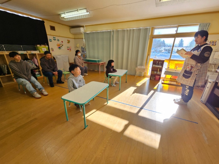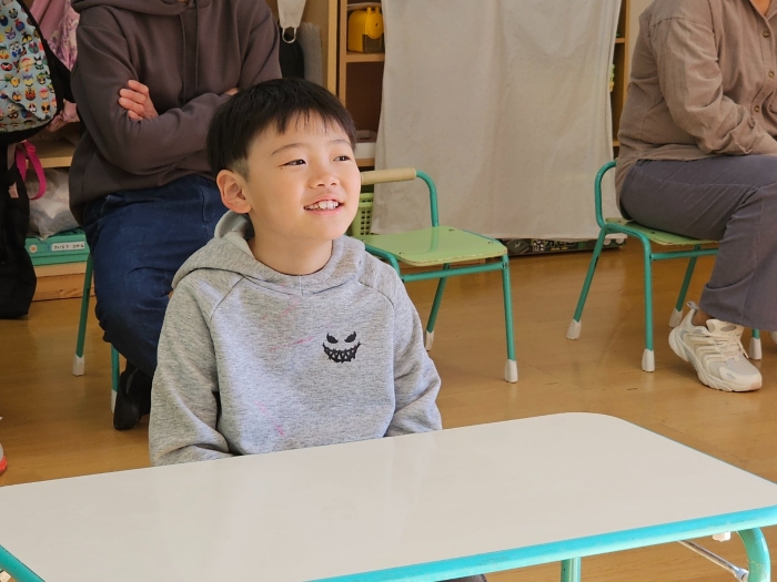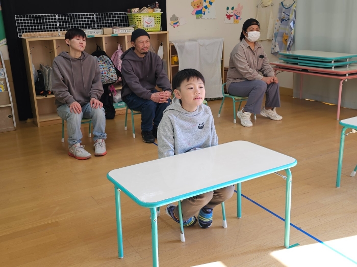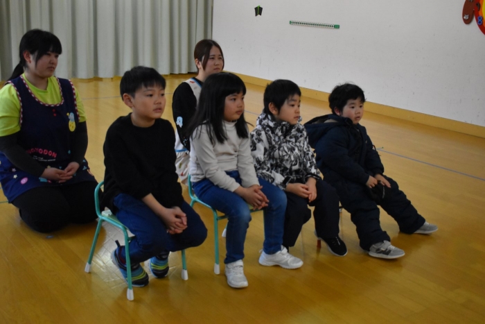 年長児が「へそっこ合同読み聞かせ」に来てくれた お父さん・お母さんを呼びに