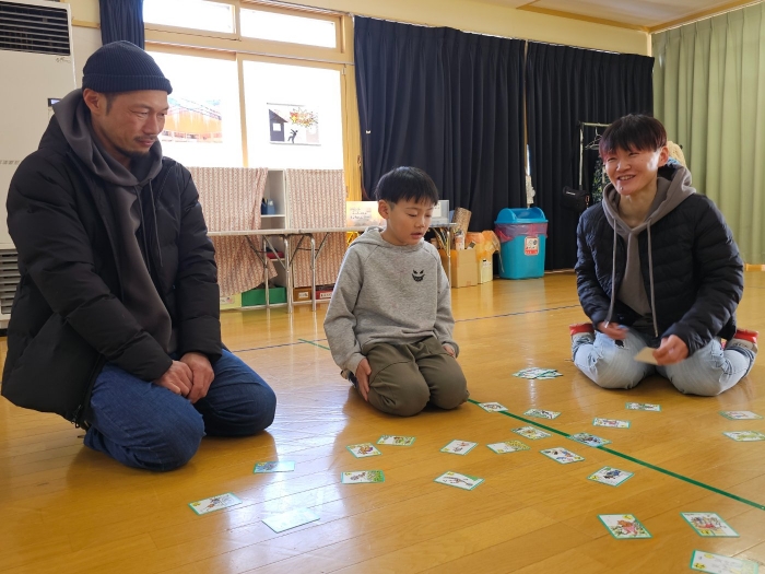 朝の会後は,親子でカルタ大会&ドッチボール対決を☆彡