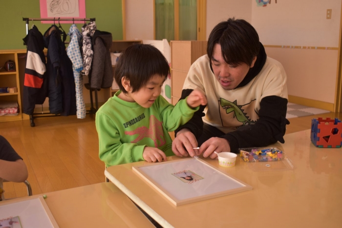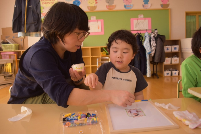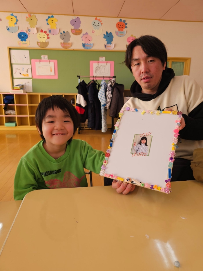 朝の会後は『親子制作』  年長組のためにナイショで取組んでいる『だいすき♡ありがとう』パーティー