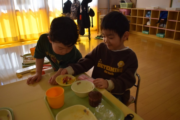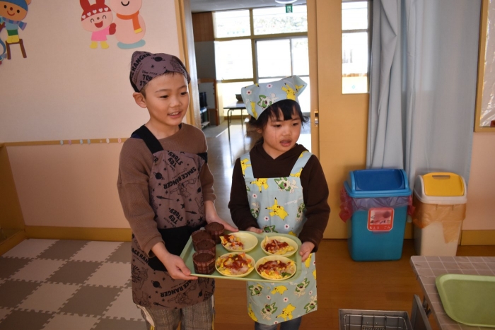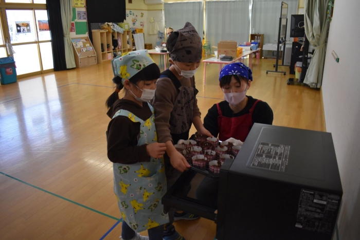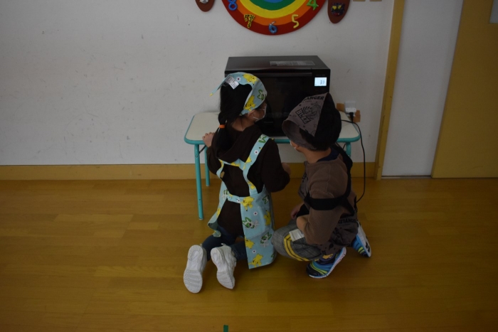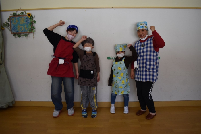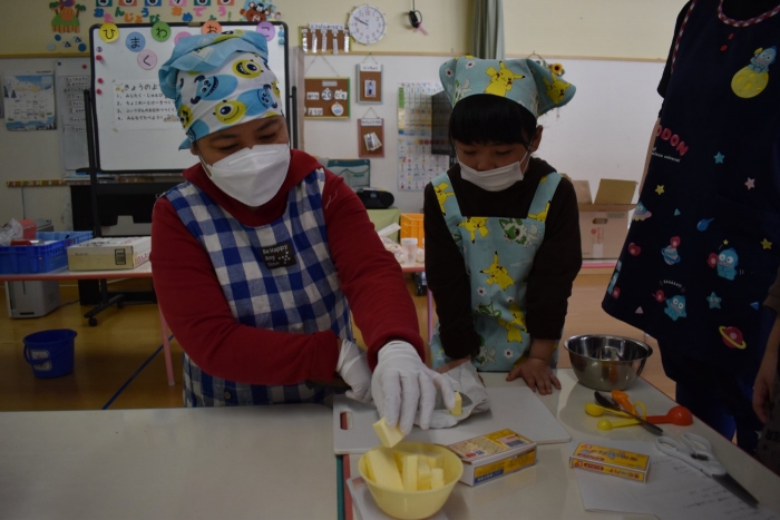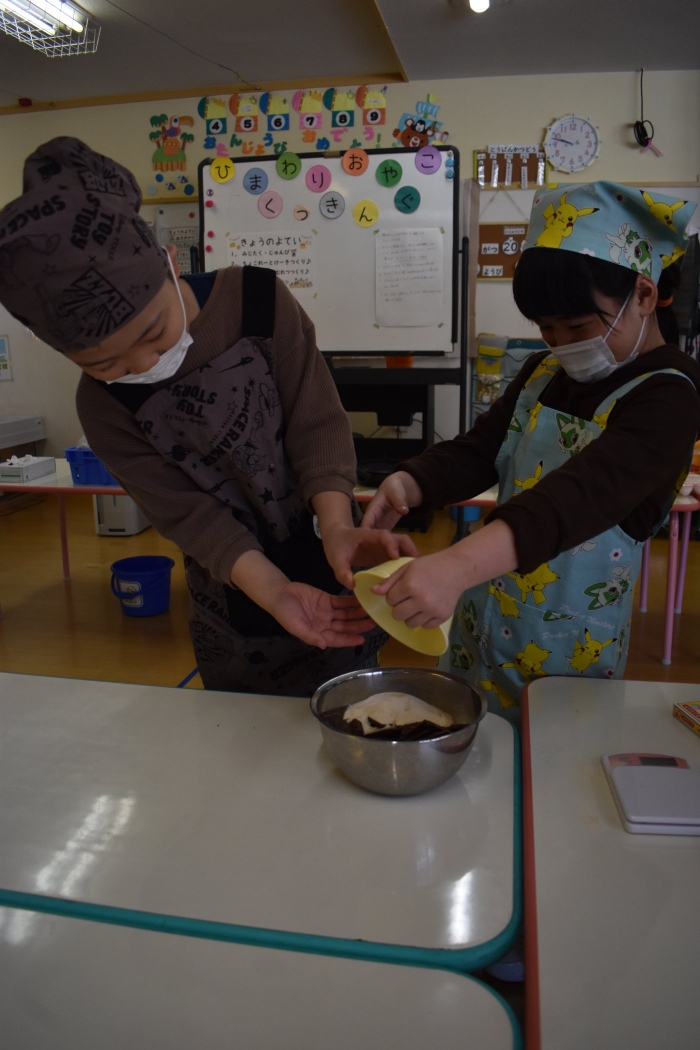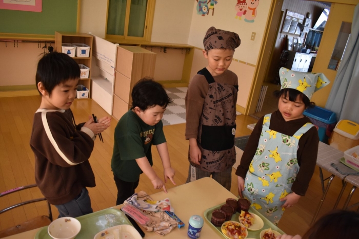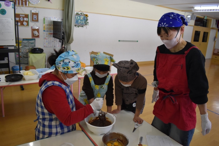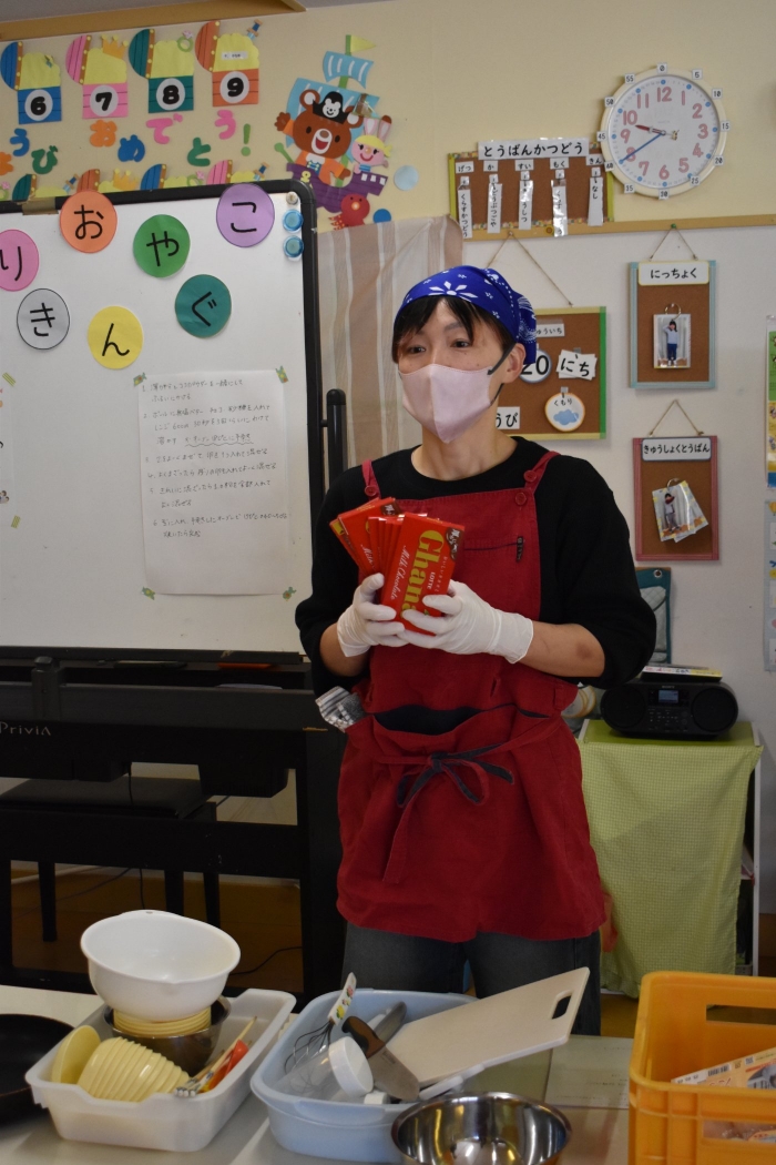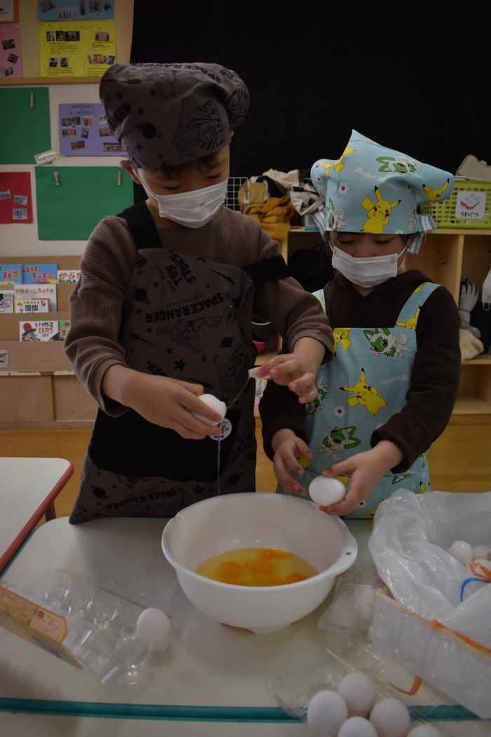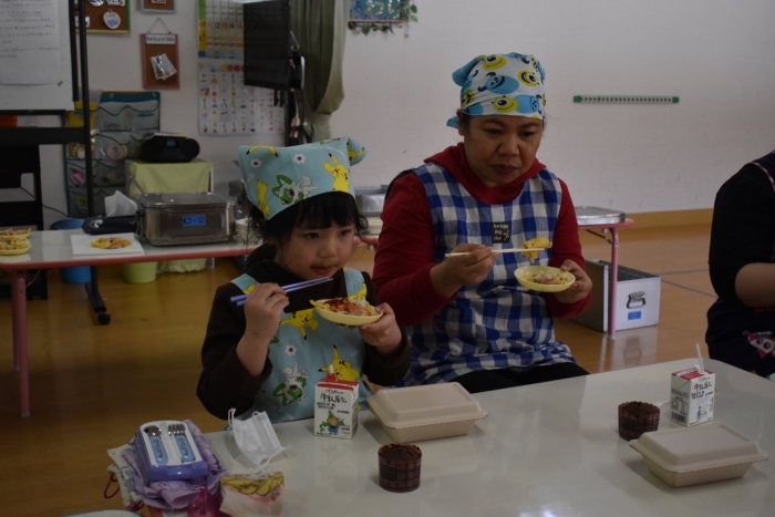 年長児が話題にした家庭料理のことをきっかけに,実現しました『年長組親子クッキング』