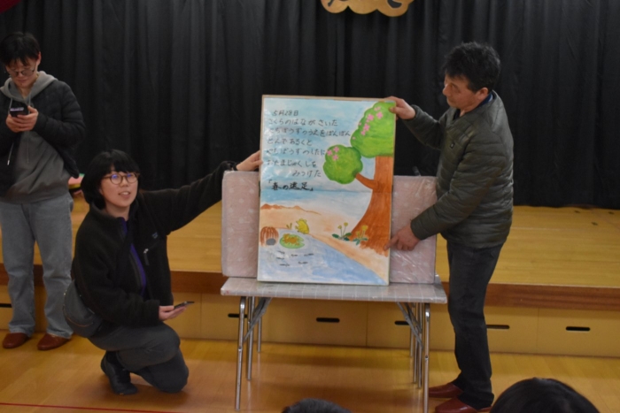 歴代保護者が手掛けた作品の中から,2作品の読み聞かせを! 最初は,平成6年度作『はる・なつ・あき・ふゆ みーつけた!」