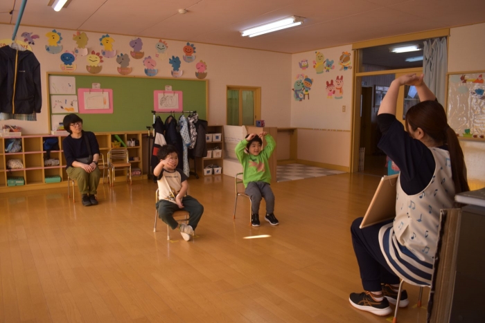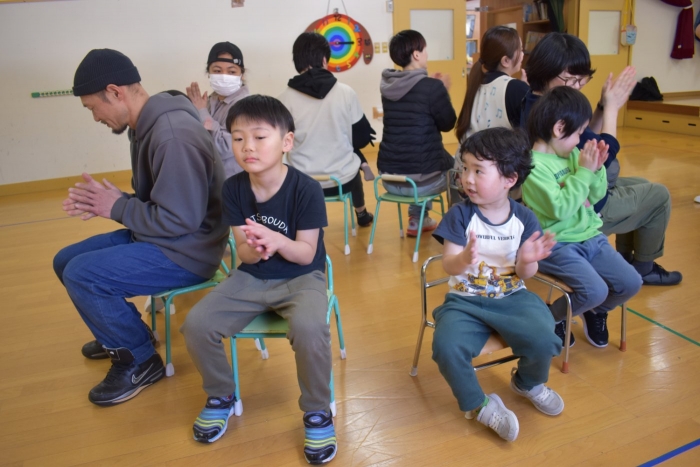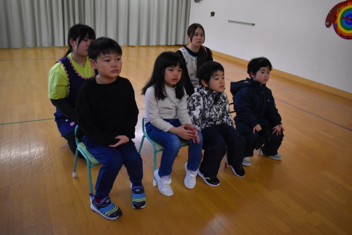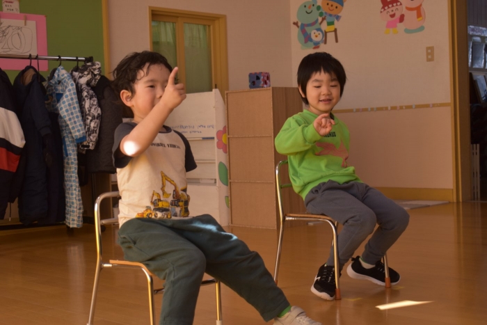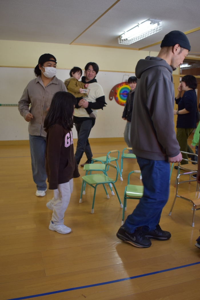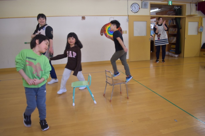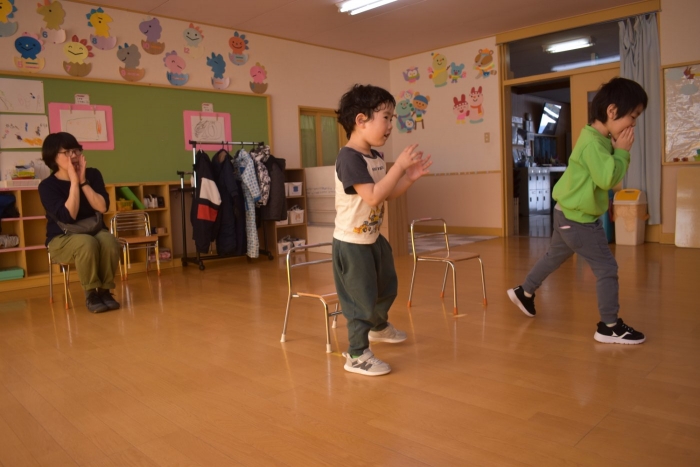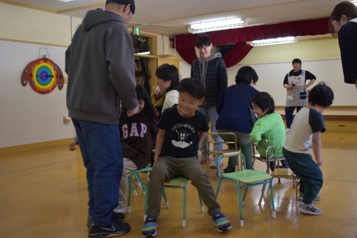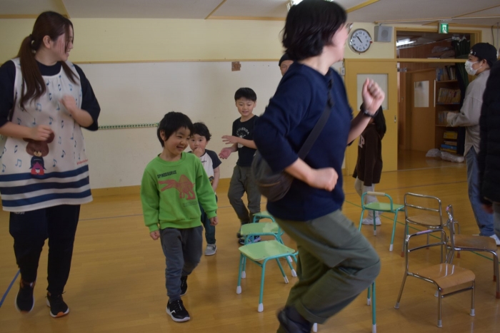 ノリノリで回ってくれるお母さん♫ 椅子を凝視する子ども達(笑)