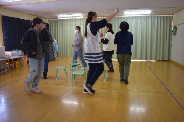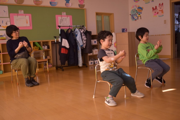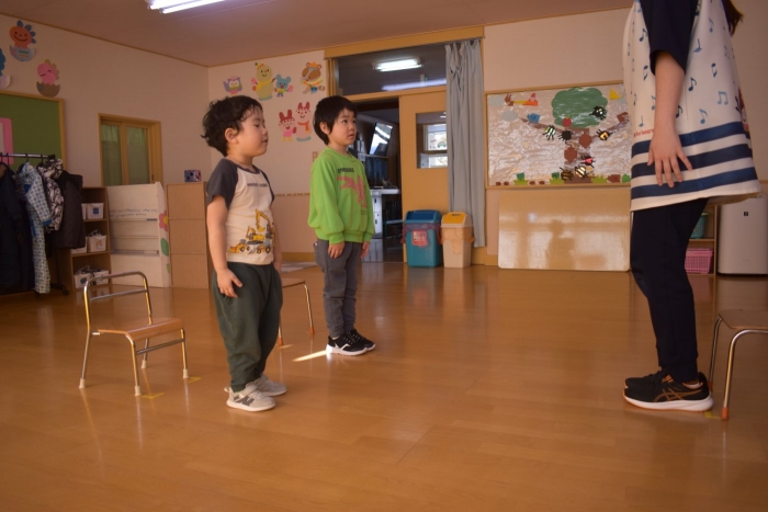 音楽に合わせ,椅子の周りを歩こう⤴⤴