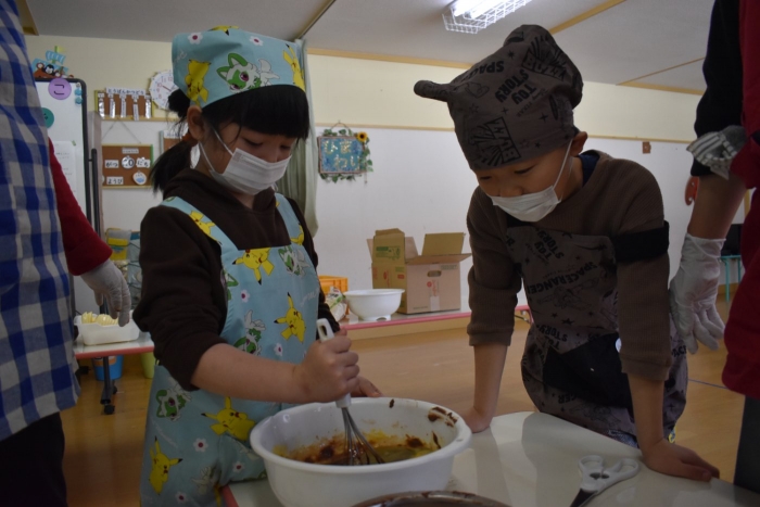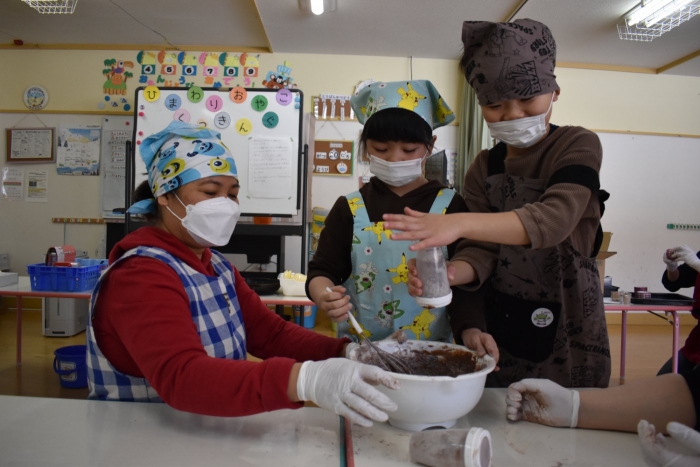 ベテランお母さんが混ぜると,なめらかに,そしてツヤ感も増しました!
