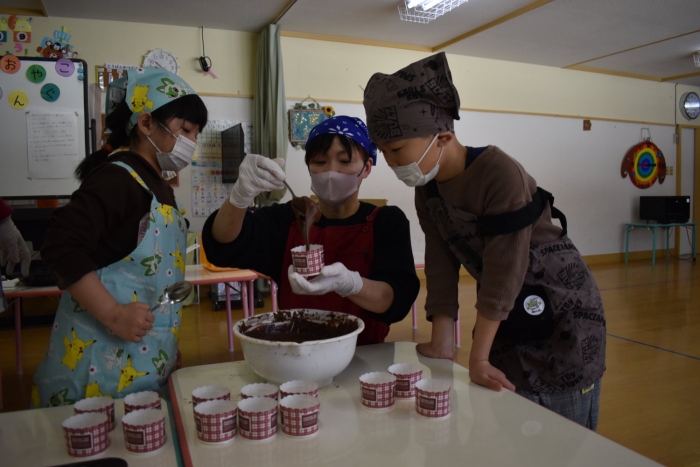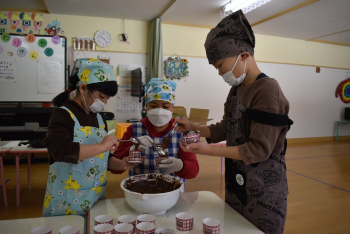 小さな型に流し入れるのは,なかなの難易度ですが,手際よく入れていきます