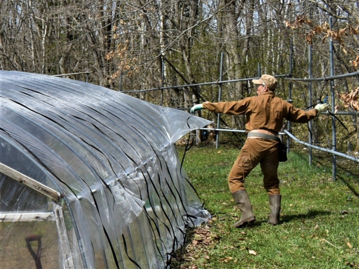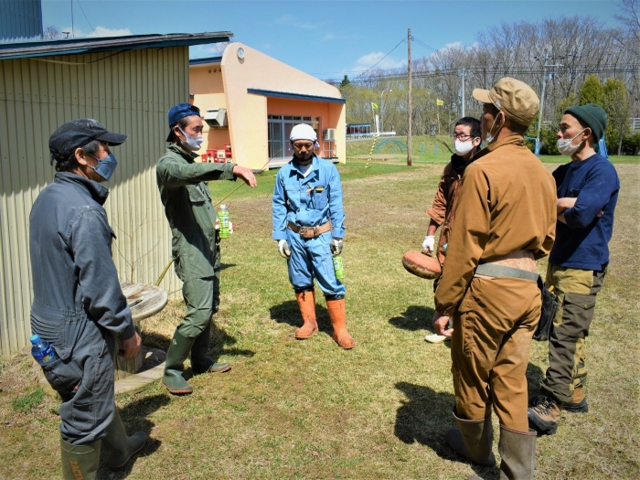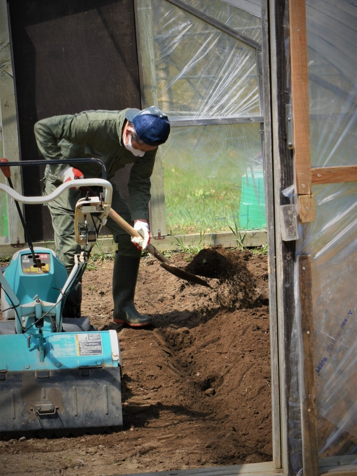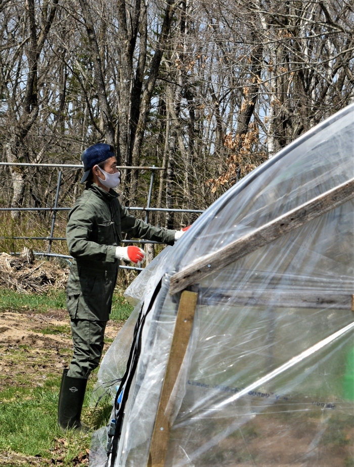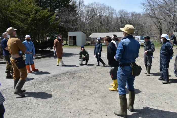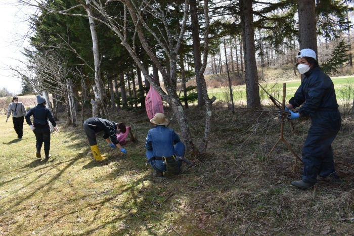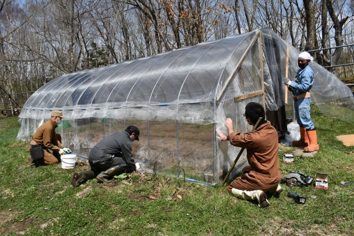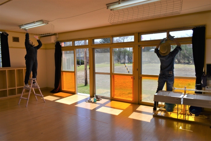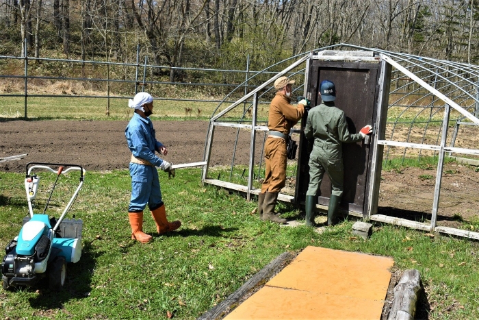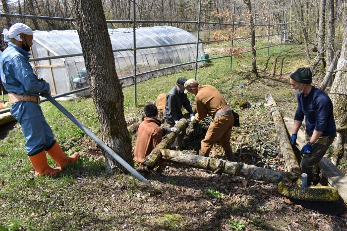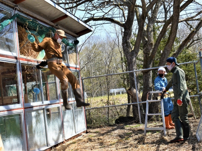 定時より早めに来園して下さる方も多く,今年度は取り止めにしていた園舎内の窓・蛍光管拭きを自主的に行って下さるお母様方の姿が…。その後,わくわくジャングルやグランドの枝拾いも行っていただきました。お父様方には,動物小屋の破損扉・窓取り換え,牧草ロール搬入,外網設置,ハウスのビニール取付,土起こし,わくわくジャングルの渡り網撤去を行っていただきました。老朽化した園環境を蘇らせていただいたり,活動がスタートできるように整備していただけたことで,より安心,安全,のびのびと保育を行うことができます。心より御礼申し上げます。