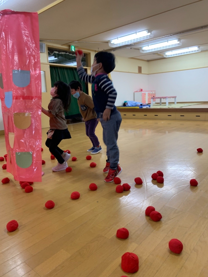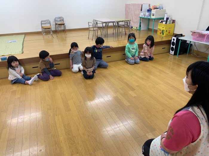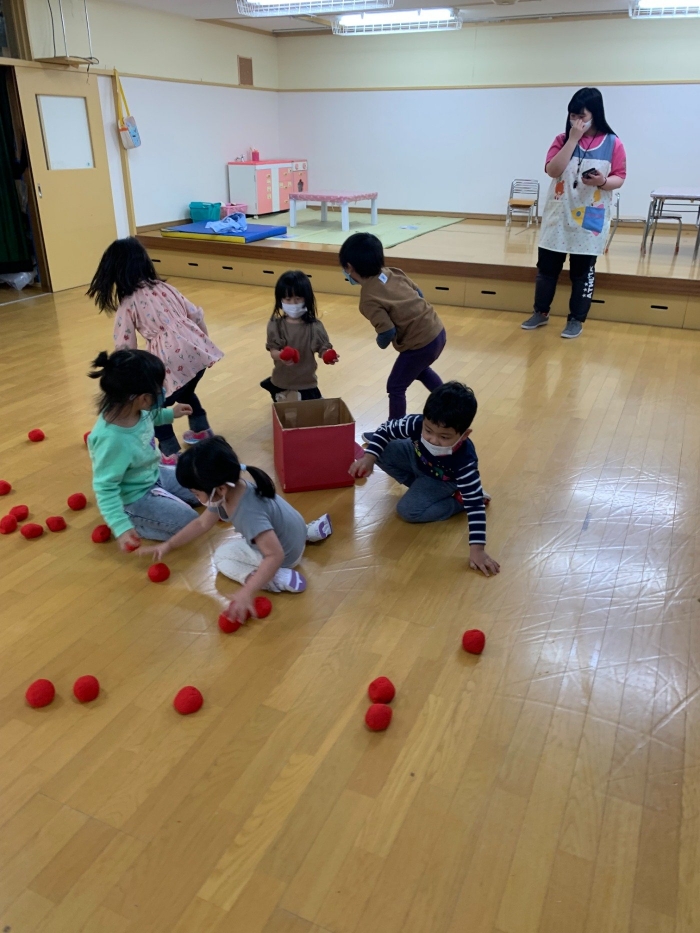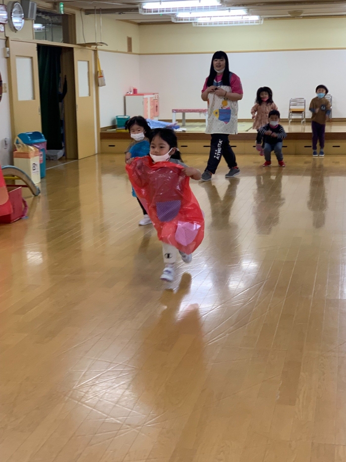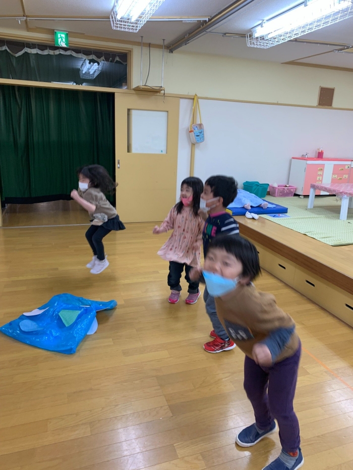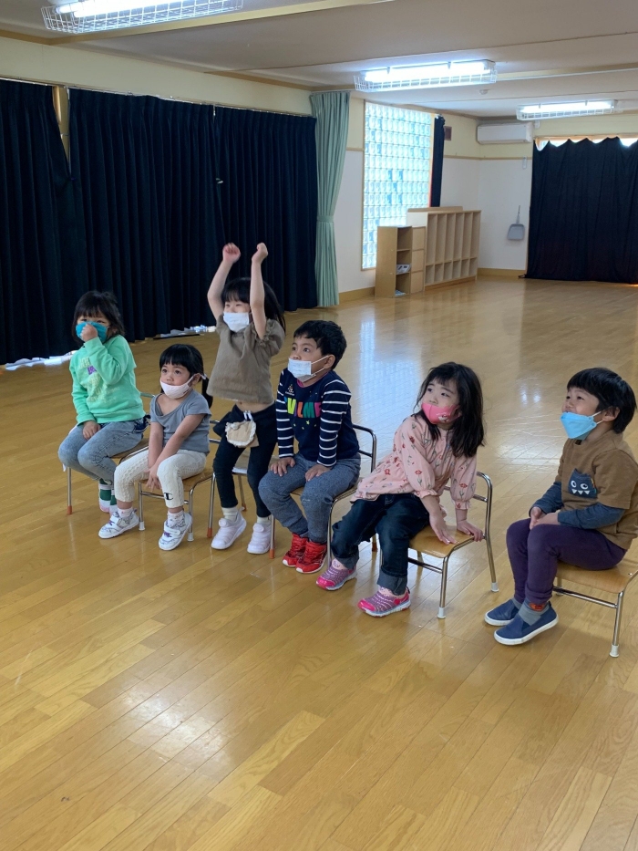 園児たちは,もうすぐで端午の節句ということで『こどもの日の集い』を行いました。こどもの日にちなんだ絵本・クイズや,鯉のぼりリレー,鯉のぼり玉入れといったゲームで大盛り上がりでした。給食後には,柏餅やペコ餅も味わい,大満足の子ども達でした。