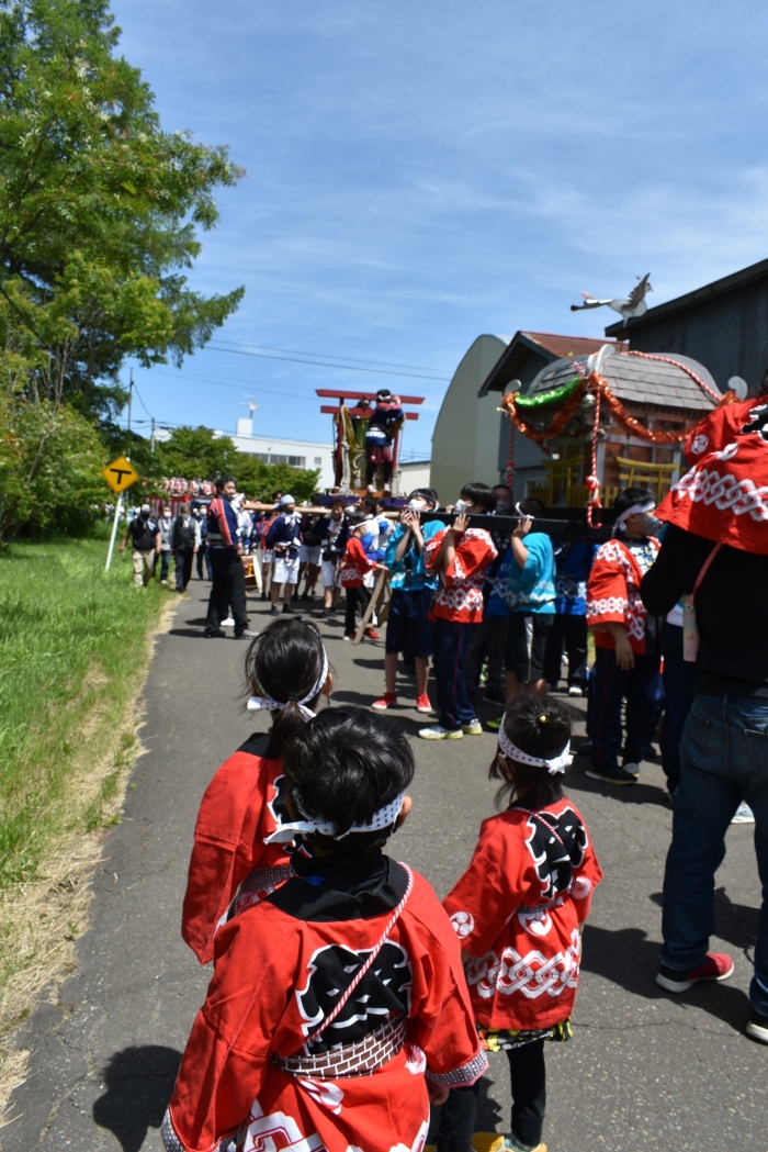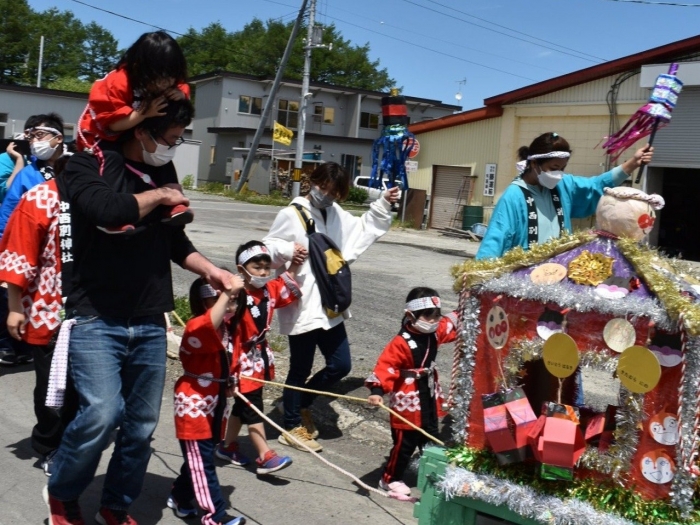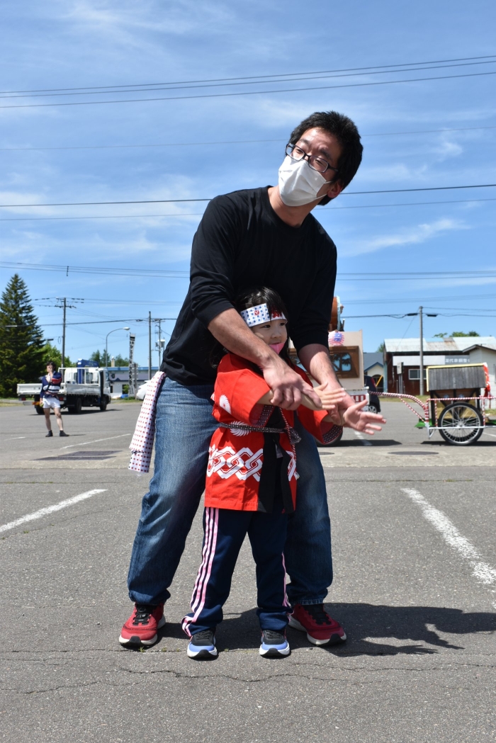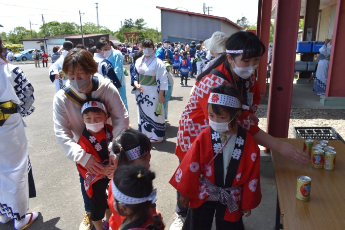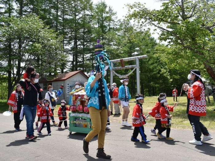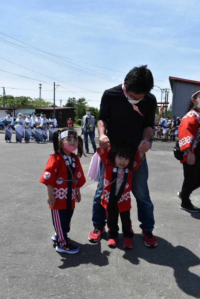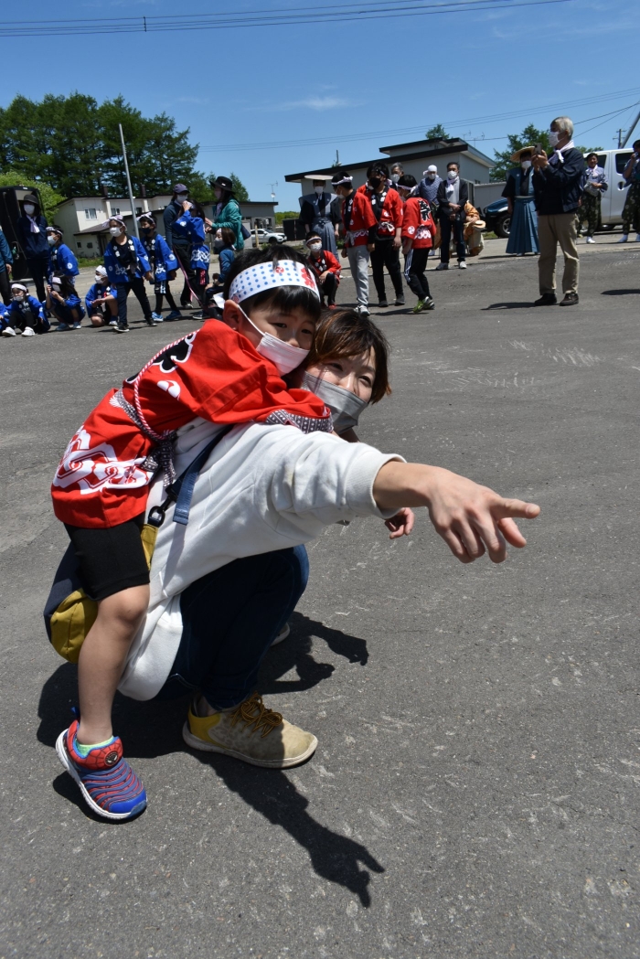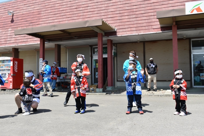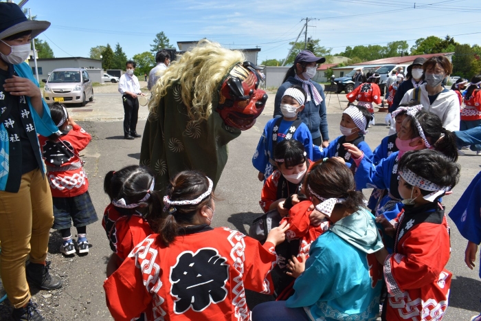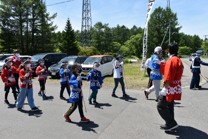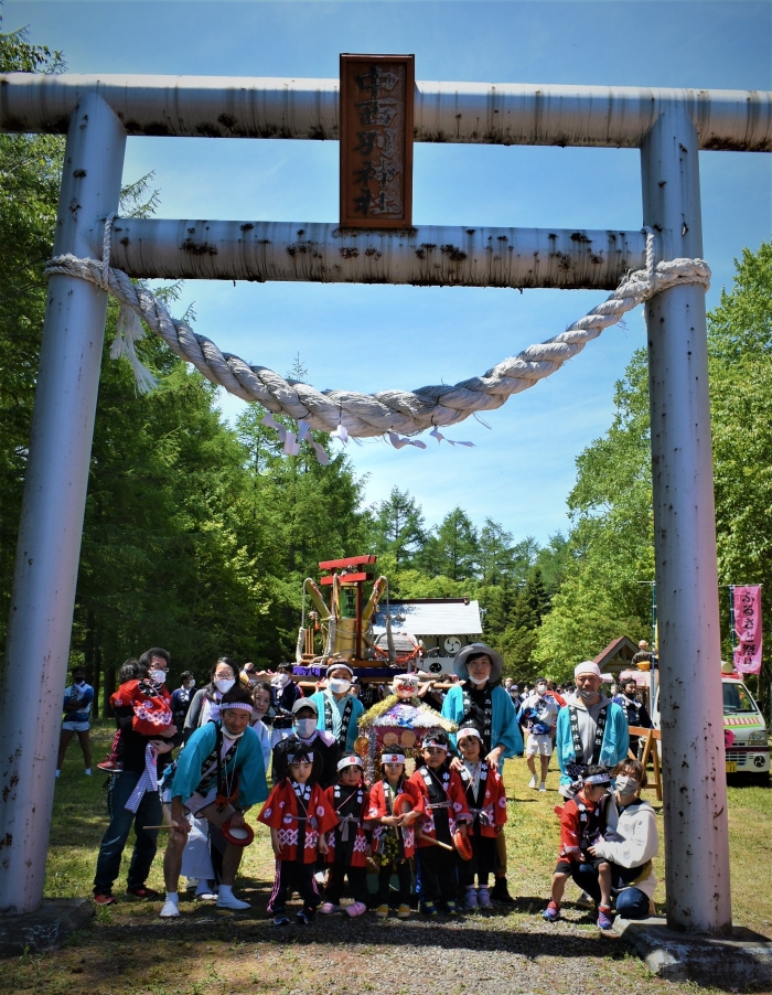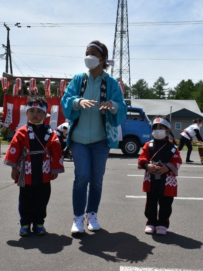 澄み渡る青空の下,待ちに待った地域の伝統行事『中西別ふるさと祭り』が開催されました。幼小合同運動会以上の人出で,普段は少人数で活動していることもあり,その雰囲気に圧倒されていましたが,休憩処でのリンゴジュースパワーで元気復活☆彡 獅子や天狗に顔が青ざめる子もいましたが(笑) お父さん・お母さんの盛り上げにより,緊張も暑さも撥ね退け,最後まで練り歩くことができました。