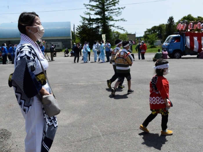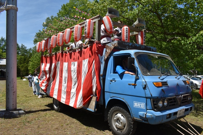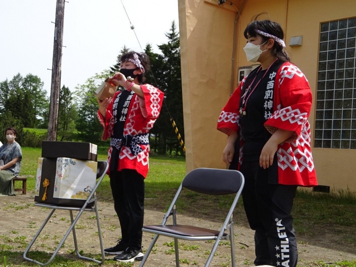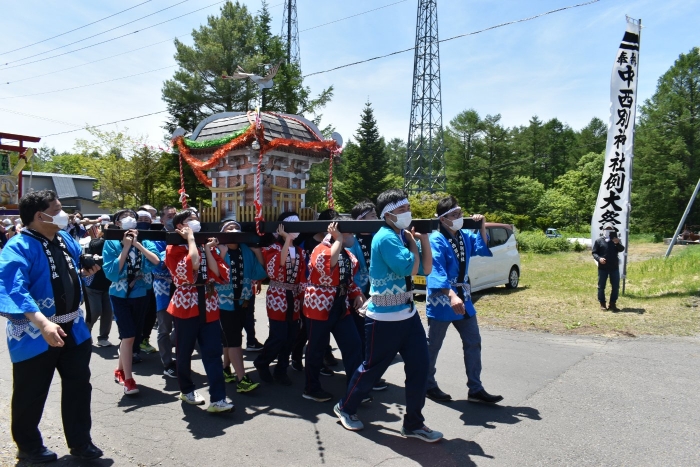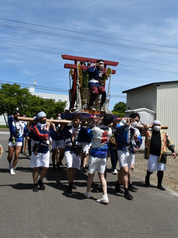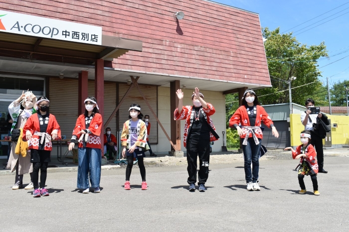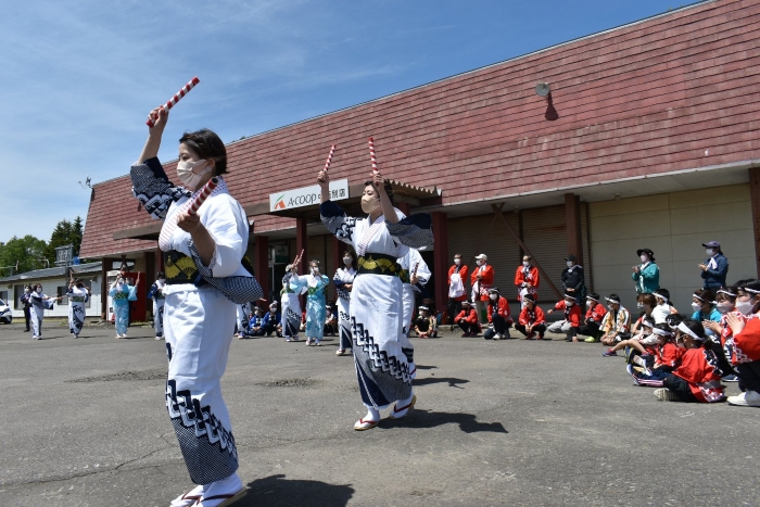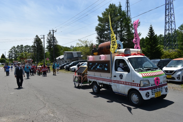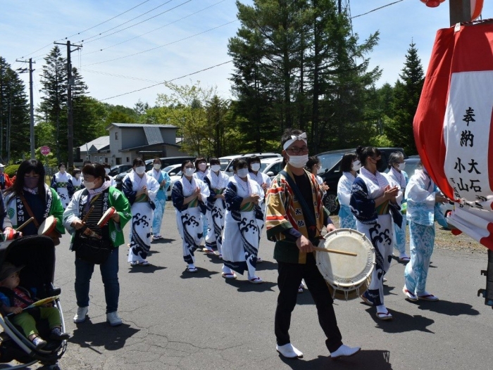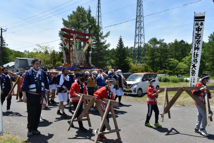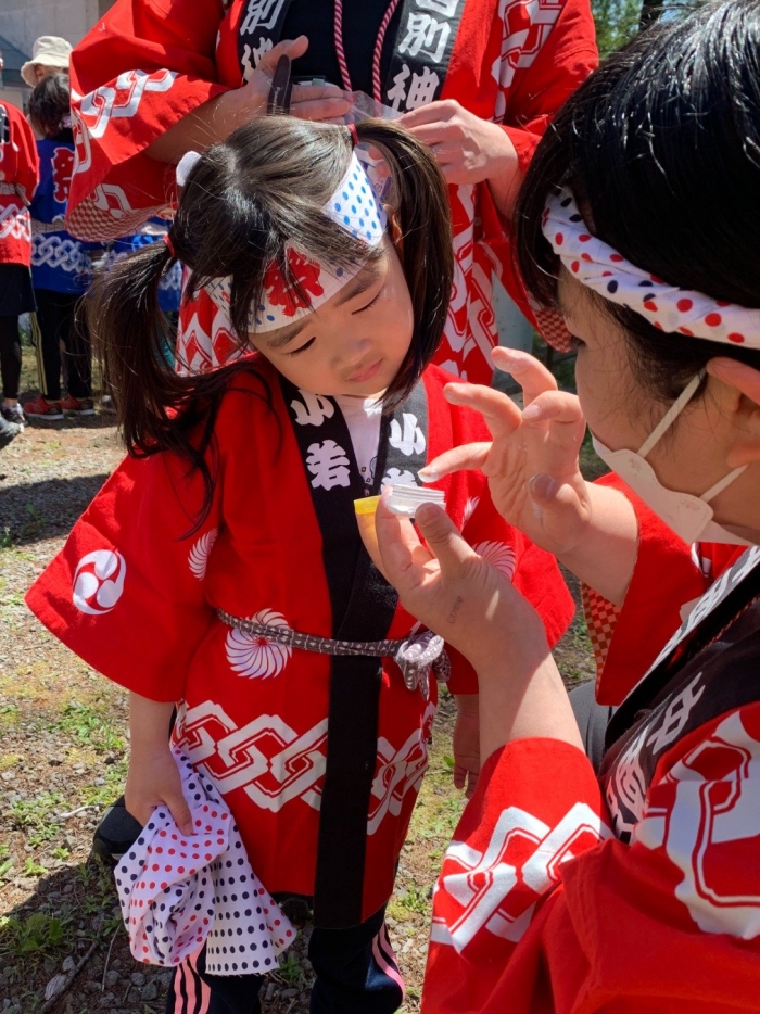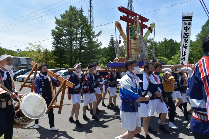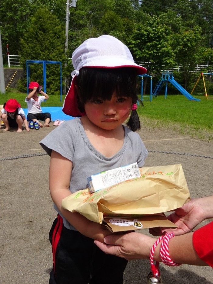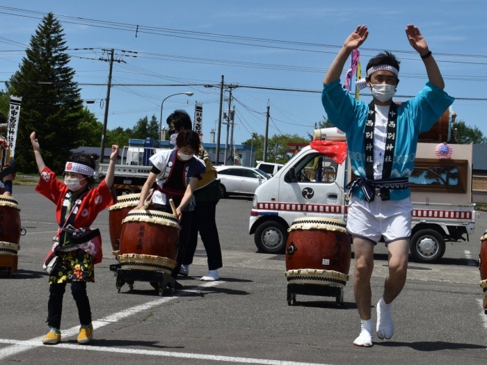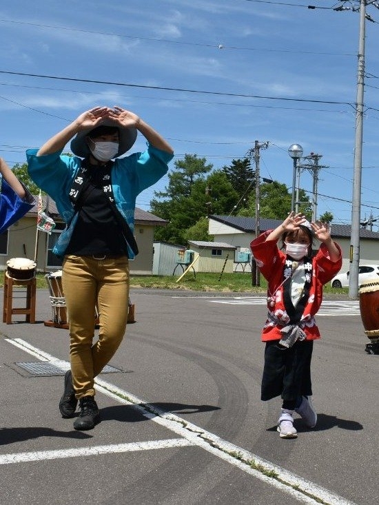澄み渡る青空の下,待ちに待った地域の伝統行事『中西別ふるさと祭り』が開催されました。幼小合同運動会以上の人出で,普段は少人数で活動していることもあり,その雰囲気に圧倒されていましたが,休憩処でのリンゴジュースパワーで元気復活☆彡 獅子や天狗に顔が青ざめる子もいましたが(笑) お父さん・お母さんの盛り上げにより,緊張も暑さも撥ね退け,最後まで練り歩くことができました。
