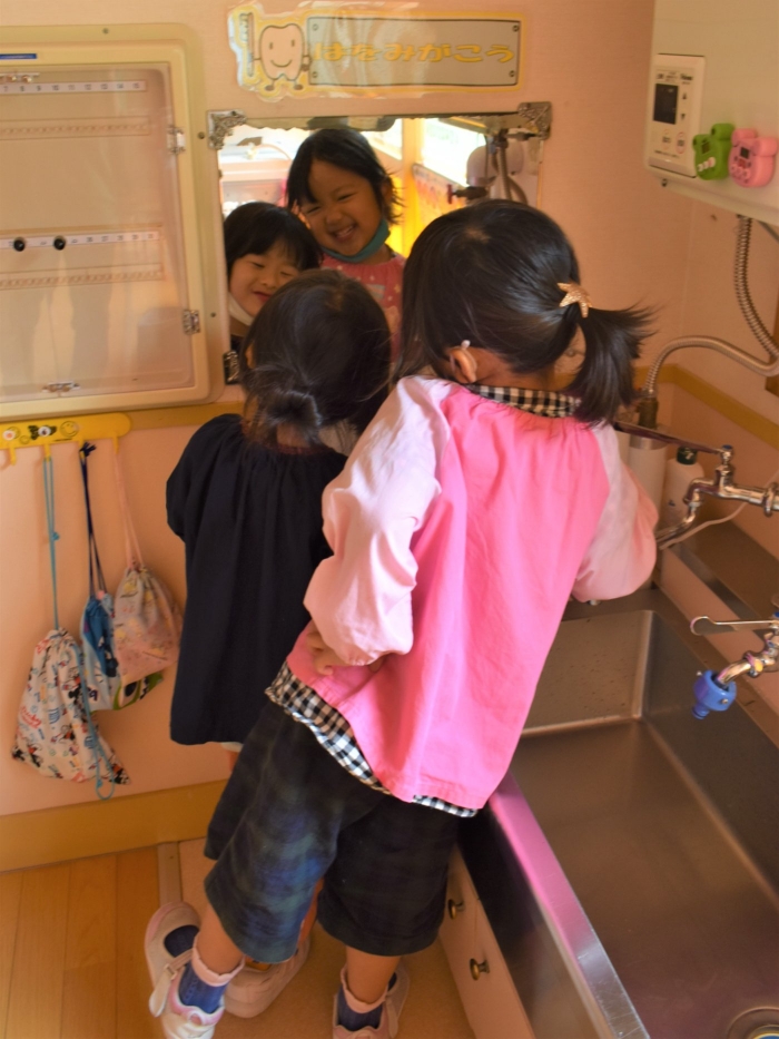 正しい歯ブラシの持ち方・歯の磨き方を教わりながら,虫歯の元・講習の元となる虫歯のウンチを無くすべくブラッシング! 正しく磨けた証『真っ白い歯』になり,歯科衛生士さんに褒められ,やり切った感を味わっていた子ども達でした。