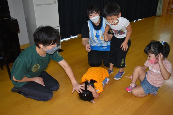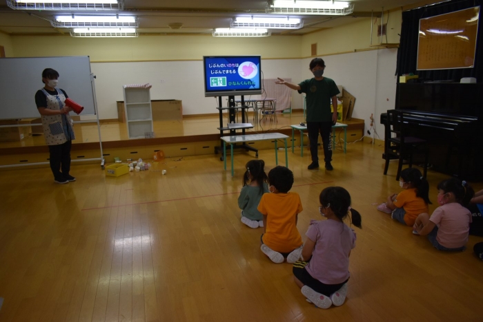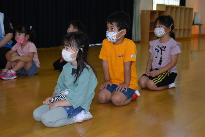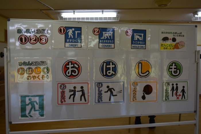 今日は,『第2回避難訓練(地震想定)』を実施しました。事前指導では,日本は地震大国! 自分たちが住んでいる地域は大地震が起きやすいこと,過去の大地震の画像や疑似地震で地震の怖さを伝え,ました。その中で,地震の安全行動の仕方,避難行動「おはしも」の約束を再確認! 安全行動の仕方については,友達の行動を見たり実際に行ったりして学び合いました。