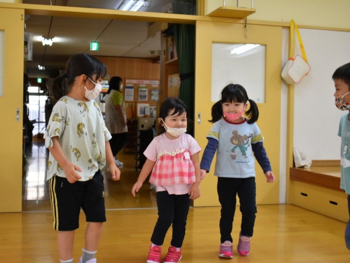 お遊戯室に行こう! お互いに,幼稚園で一緒に遊ぶことを楽しみにしている姿もあります
