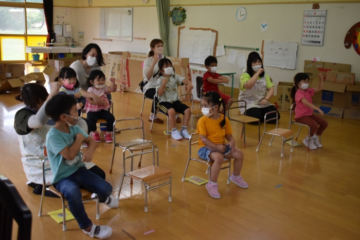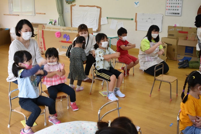 シール帳を貼り終わった後には,みんなで手遊び♫